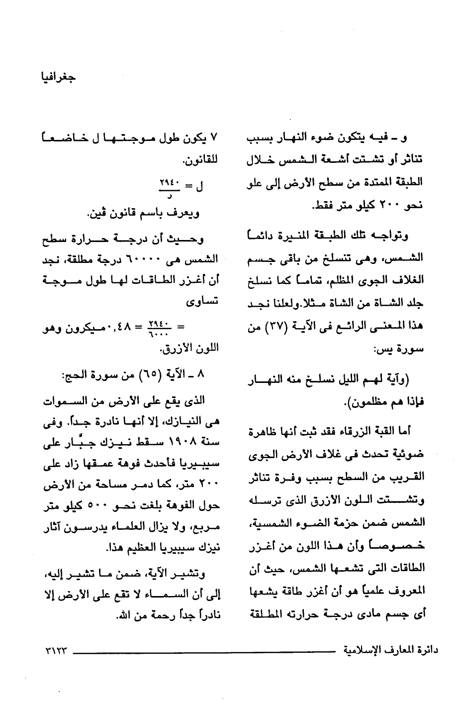 وتواجه للك الطبقة المنيرة دائمًا الشمس، وهي تنسلخ من باقي جسم الغلاف الجوى المظلم، تمامًا كما نسلخ جلد الشاة من الشاة مثلًا. ولعلنا نجد هذا المعنى الرائع في الآية (37) من سورة يس: