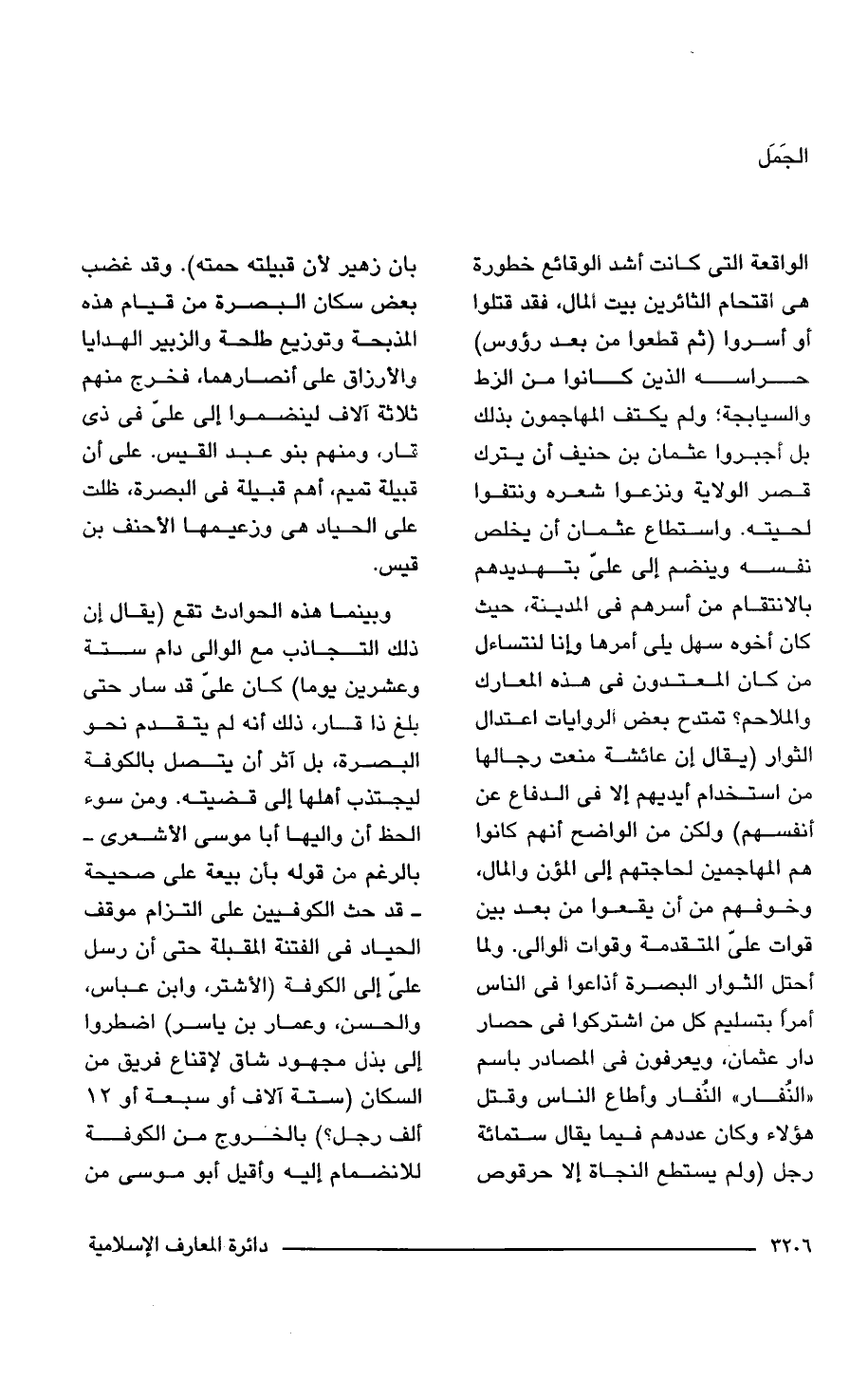 وبينما هذه الحوادث تقع (يقال إن ذلك التجاذب مع الوالى دام ستة وعشرين يوما) كان على قد سار حتى بلغ ذا قار، ذلك أنه لم يتقدم نحو البصرة، بل آثر أن يتصل بالكوفة ليجتذب أهلها إلى قضيته. ومن سوء الحظ أن واليها أبا موسى الأشعرى- بالرغم من قوله بأن بيعة على صحيحة - قد حث الكوفيين على التزام موقف الحياد في الفتنة المقبلة حتى أن رسل على إلى الكوفة (الأشتر، وابن عباس، والحسن، وعمار بن ياسر) اضطروا إلى بذل مجهود شاق لإقناع فريق من السكان (ستة آلاف أو سبعة أو 12 ألف رجل؟ ) بالخروج من الكوفة للانضمام إليه وأقيل أبو موسى من