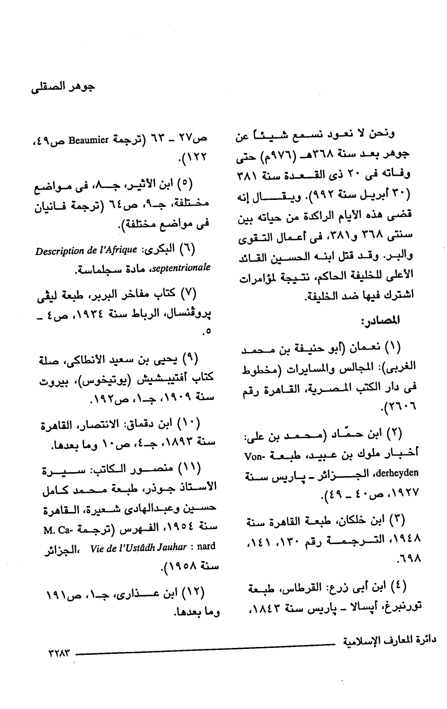 (11) منصور الكاتب: سيرة الأستاذ جوذر، طبعة محمد كامل حسين ولمجد الهادي شعيرة، القاهرة سنة 1954، الفهرس (ترجمة M. Ca- Vie de l'Ustfdh Jauhar: nard، الجزائر سنة 1958).