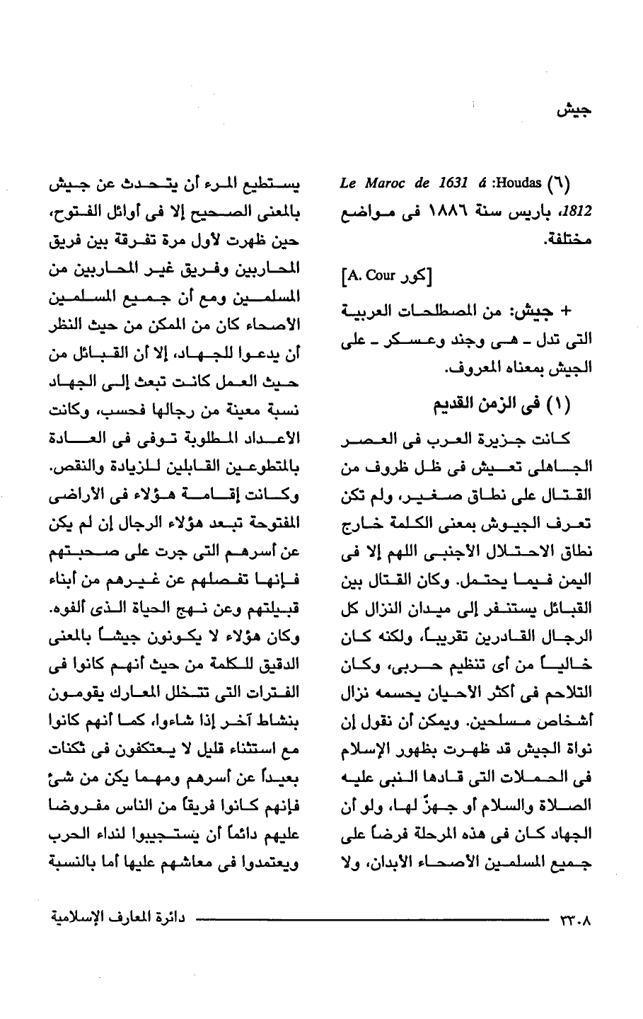 + جيش: من المصطلحات العربية التي تدل - هى وجند وعسكر - على الجيش بمعناه المعروف.