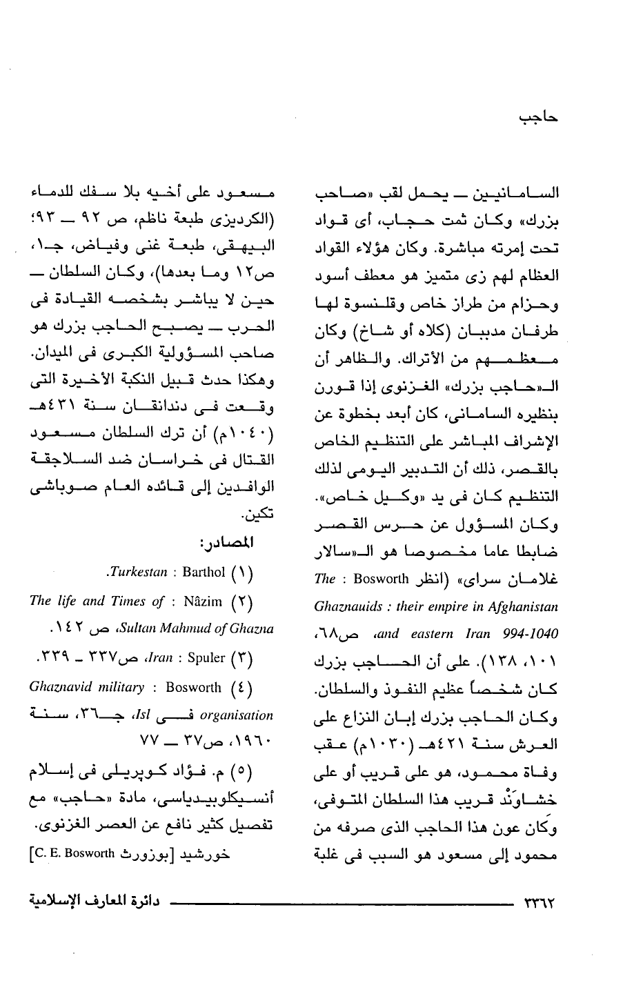 (5) م. فؤاد كوبريلى فى إسلام أنسيكلوبيدياسى، مادة "حاجب" مع تفصيل كثير نافع عن العصر الغزنوى.