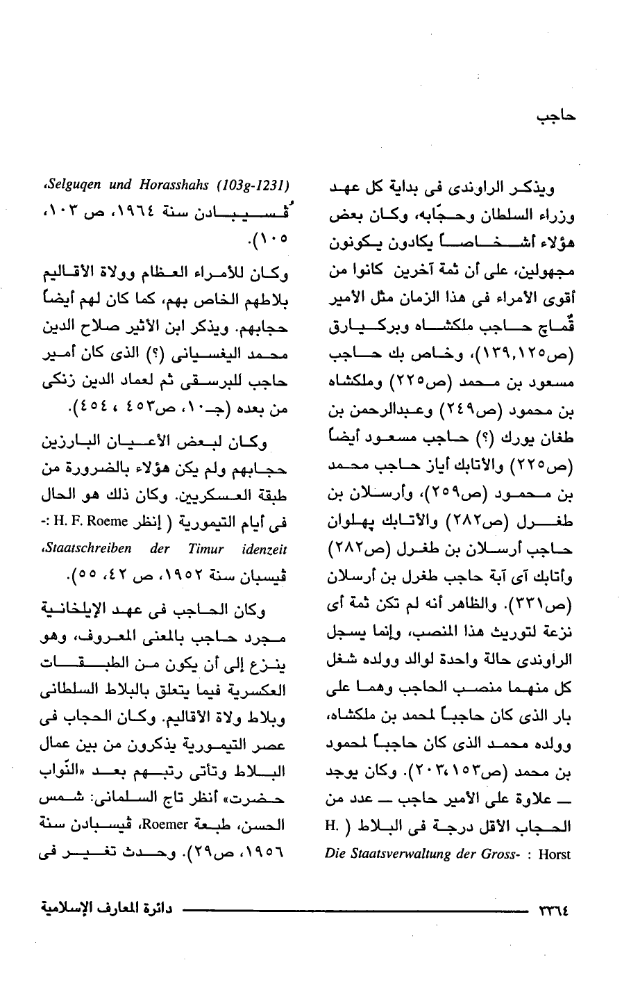 وكان لبعض الأعيان البارزين حجابهم ولم يكن هؤلاء بالضرورة من طبقة العسكريين. وكان ذلك هو الحال فى أيام التيمورية (إنظر Roeme .H.F: - Staatschreiben der Timur idenzeit، فيسبان سنة 1952، ص 42، 55).