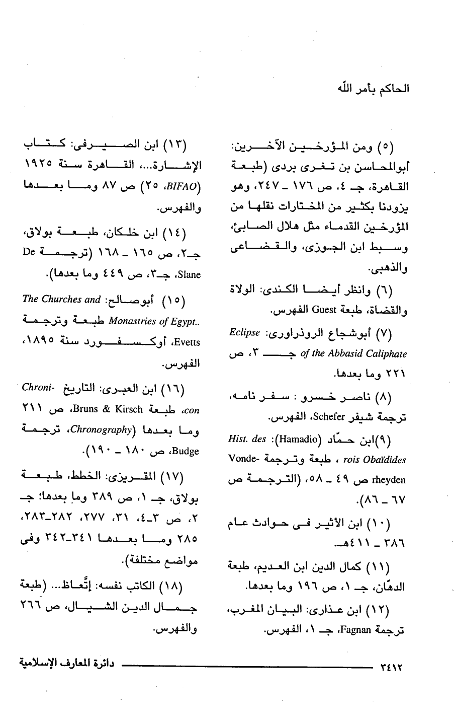 (5) ومن المؤرخين الآخرين: أبو المحاسن بن تغرى بردى (طبعة القاهرة، جـ 4، ص 176 - 247، وهو يزودنا بكثير من المختارات نقلها من المؤرخين القدماء مثل هلال الصابئ، وسبط ابن الجوزى، والقضاعى والذهبى.