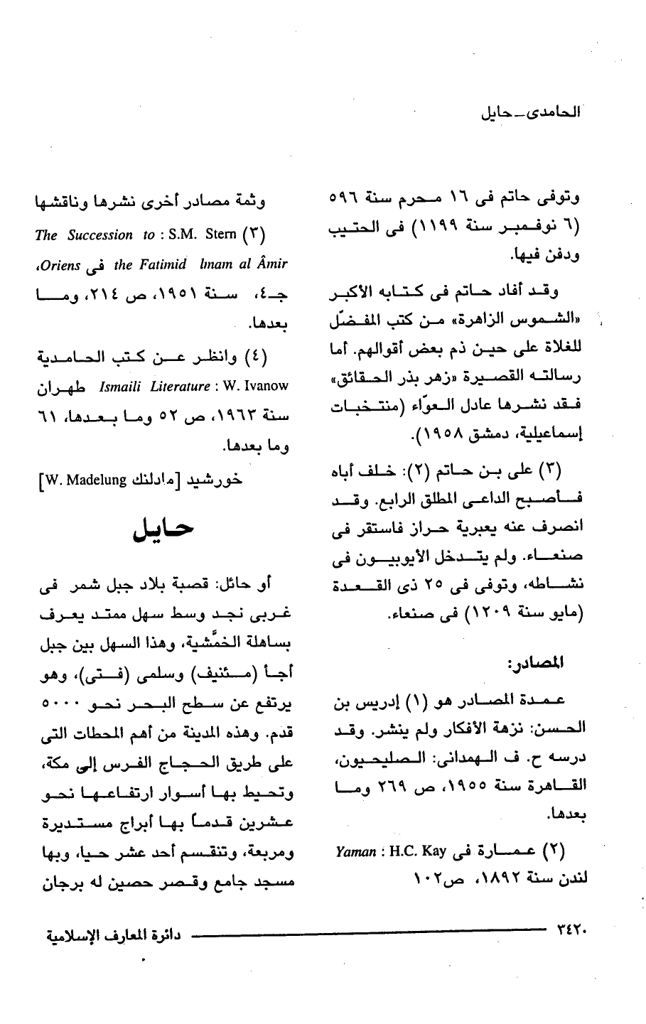 (4) وانظر عن كتب الحامدية Ismaili Literature: W. Ivanow طهران سنة 1963، ص 52 وما بعدها، 61 وما بعدها.