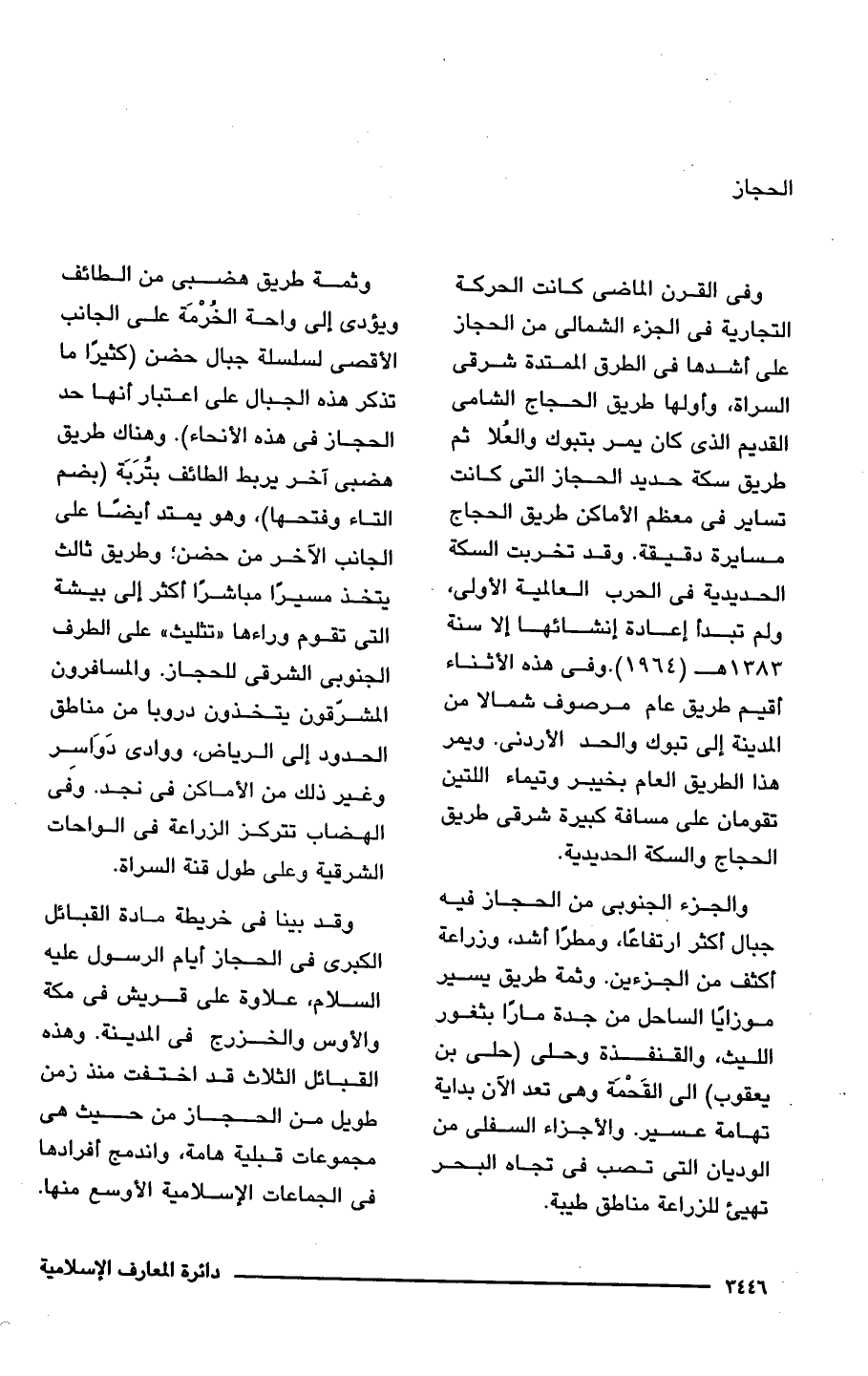 وقد بينا فى خريطة مادة القبائل الكبرى فى الحجاز أيام الرسول عليه السلام، علاوة على قريش فى مكة والأوس والخزرج فى المدينة. وهذه القبائل الثلاث قد اختفت منذ زمن طويل من الحجاز من حيث هى مجموعات قبلية هامة، واندمج أفرادها فى الجماعات الإِسلامية الأوسع منها.