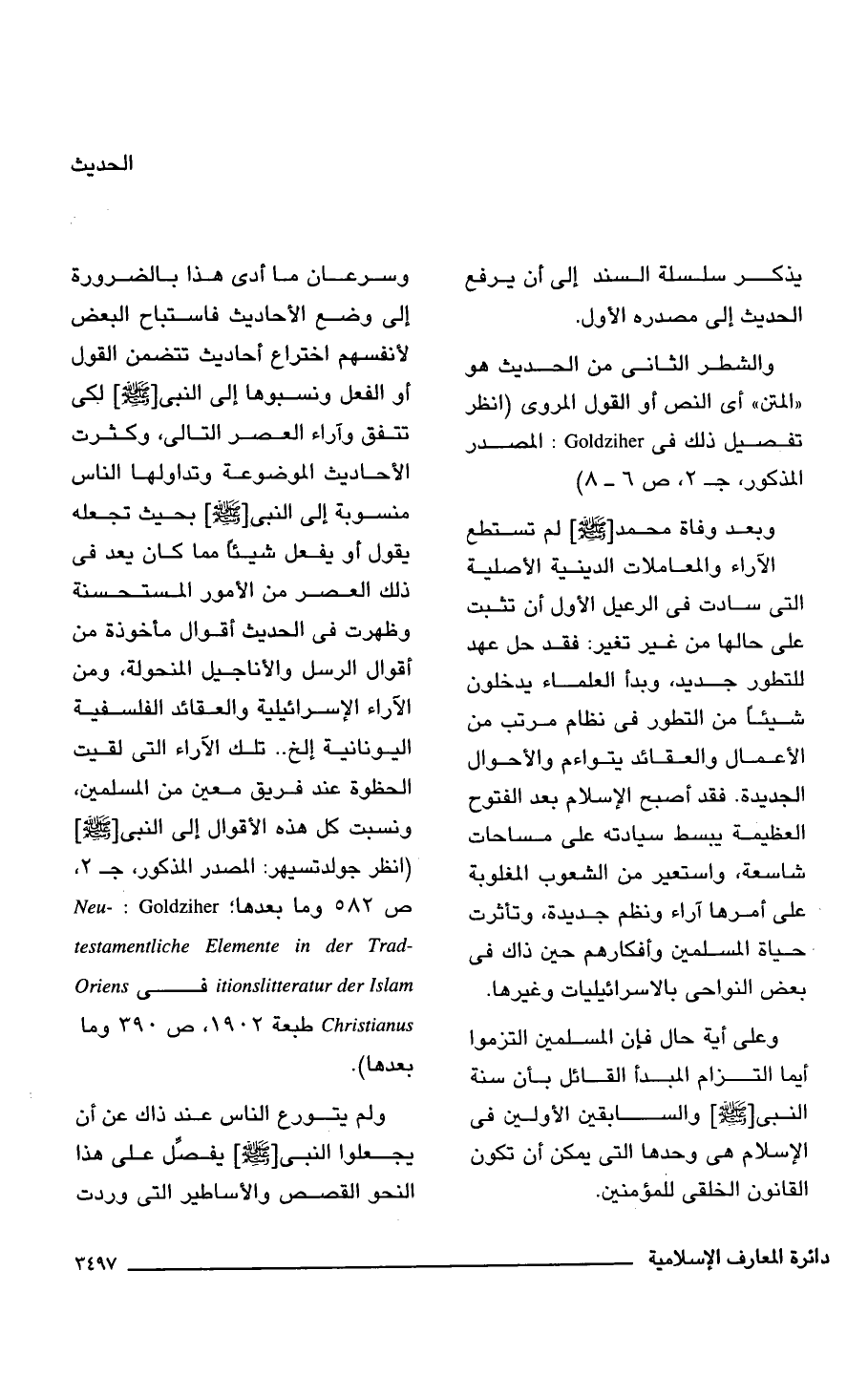 والشطر الثانى من الحديث هو "المتن" أى النص أو القول المروى (انظر تفصيل ذلك فى Goldziher: المصدر المذكور، جـ 2، ص 6 - 8)