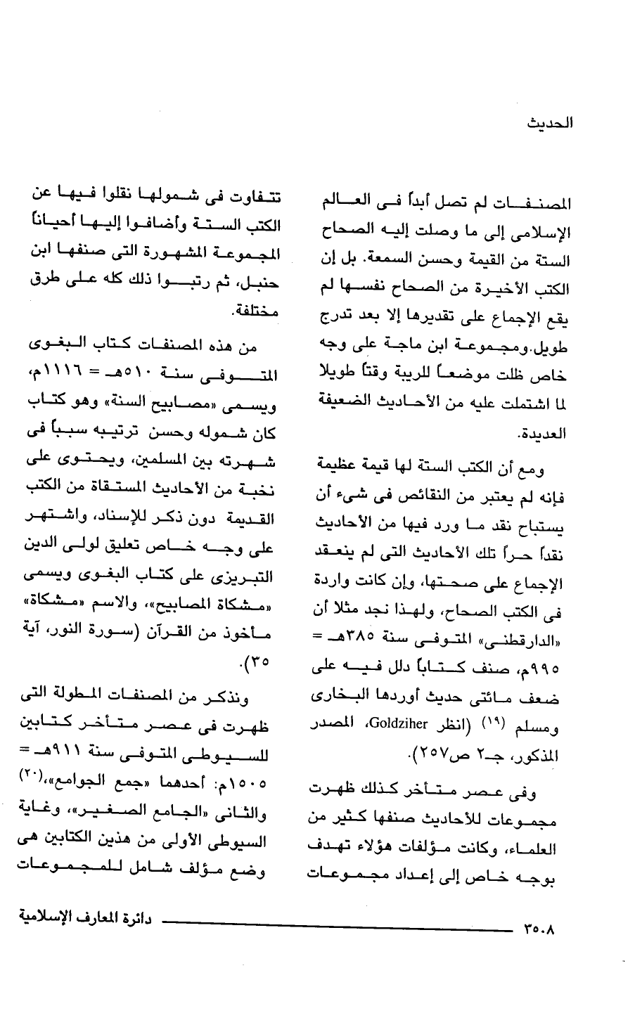 ومع أن الكتب الستة لها قيمة عظيمة فإنه لم يعتبر من النقائص فى شئ أن يستباح نقد ما ورد فيها من الأحاديث نقدًا حرًا تلك الأحاديث التى لم ينعقد الإجماع على صحتها، وإن كانت واردة فى الكتب الصحاح, ولهذا نجد مثلا أن "الدارقطنى" المتوفى سنة 385 هـ = 995 م، صنف كتابًا دلل فيه على ضعف مائتى حديث أوردها البخارى ومسلم (19) (انظر GoIdziher, المصدر المذكور, جـ 2 ص 257).