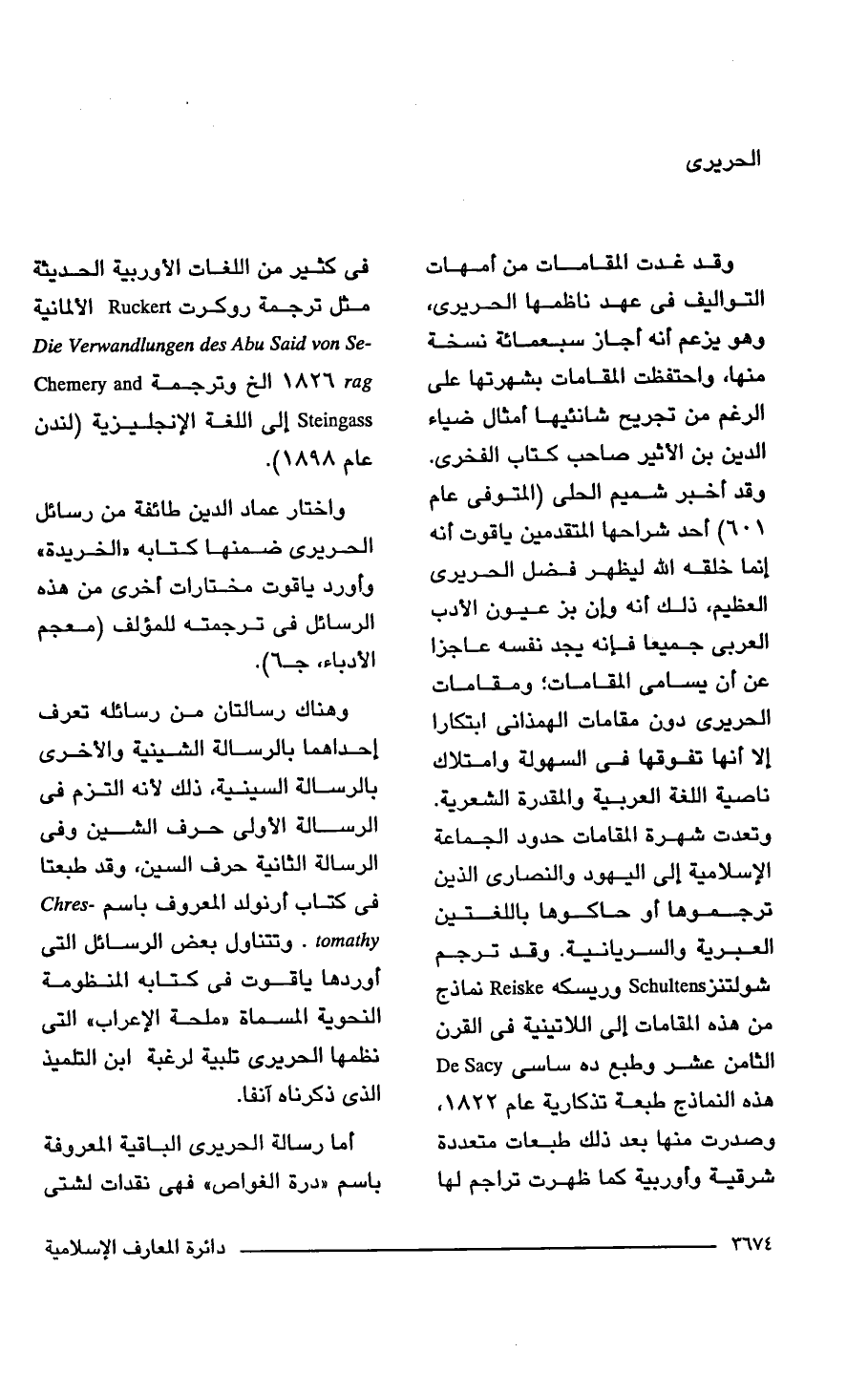 واختار عماد الدين طائفة من رسائل الحريرى ضمنها كتابه "الخريدة" وأورد ياقوت مختارات أخرى من هذه الرسائل فى ترجمته للمؤلف (معجم الأدباء، جـ 6).