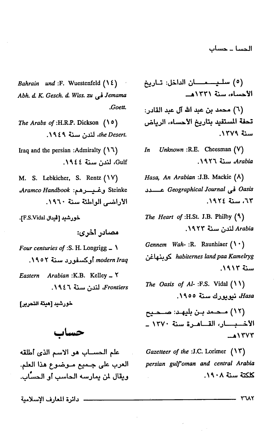 (8) Hasa, An Arabian: J.B. Mackie Oasis في Geographical Journal عدد 63، سنة 1924.