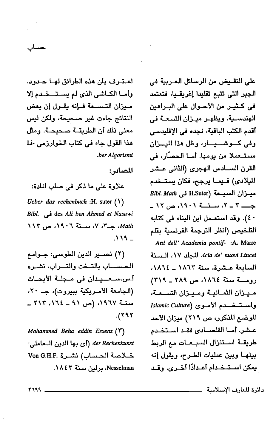 (3) Mohammed Beha eddin Essenz der Rechenkunst (أى بها الدين العاملى: خلاصة الحساب) نشرة. Von G.H.F Nesselman، برلين سنة 1843.