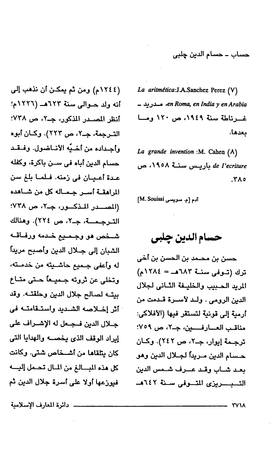 (7) La aritmetica: J.A.Sanchez Perez en Roma, en India y en Arabia, مدريد - غرناطة سنة 1949، ص 120 وما بعدها.