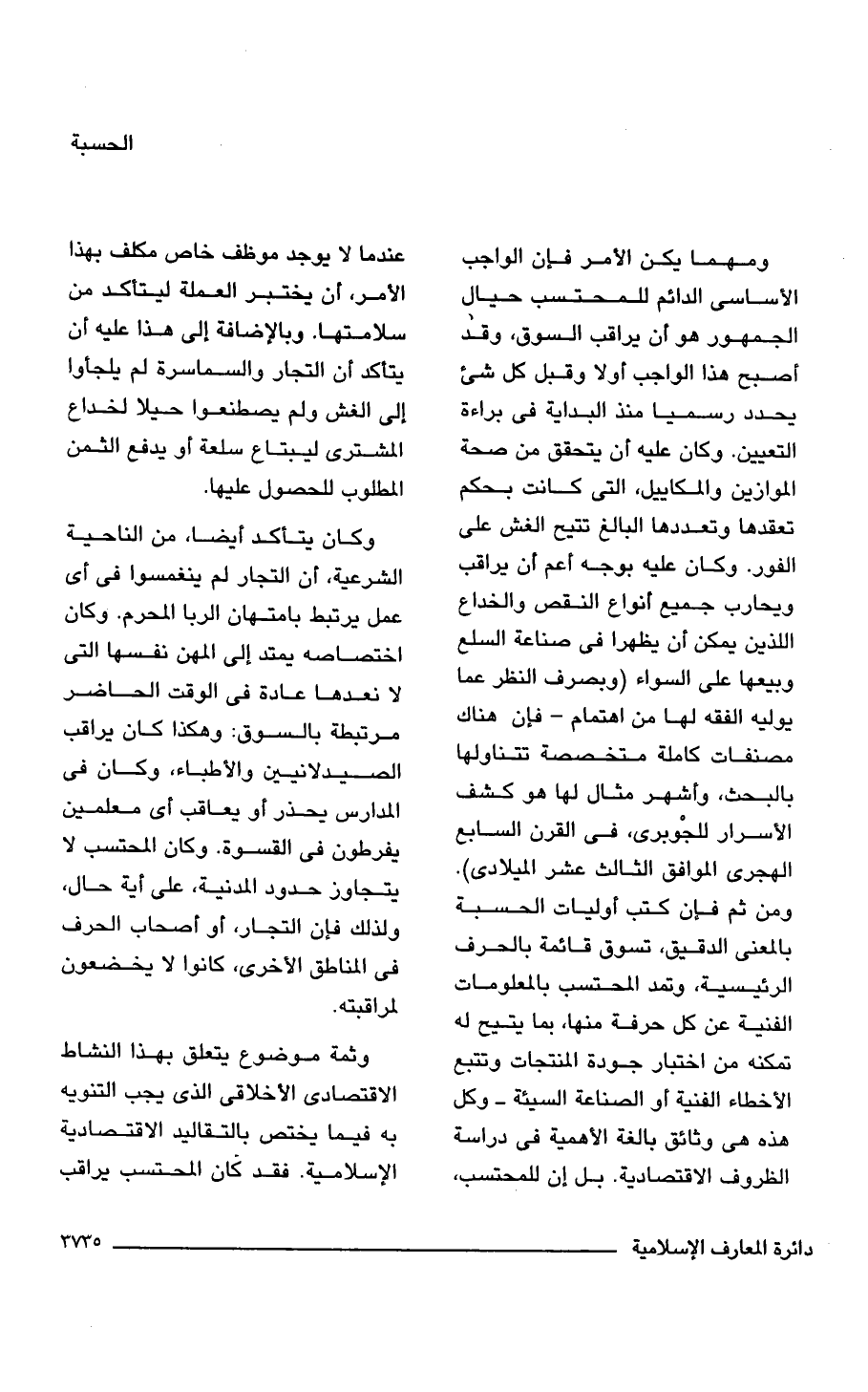 وثمة موضوع يتعلق بهذا النشاط الاقتصادى الأخلاقى الذى يجب التنويه به فيما يختص بالتقاليد الاقتصادية الإسلامية. فقد كان المحتسب يراقب