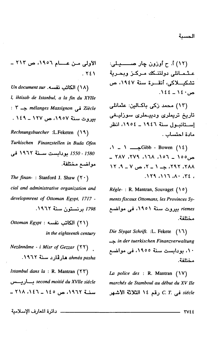 (18) الكاتب نفسه. Un document sur l, ihtisab de Istanbul, a la fin du XYIIe Ziecle في melanges Massignon جـ 3: بيروت سنة 1957، ص 127 - 149.