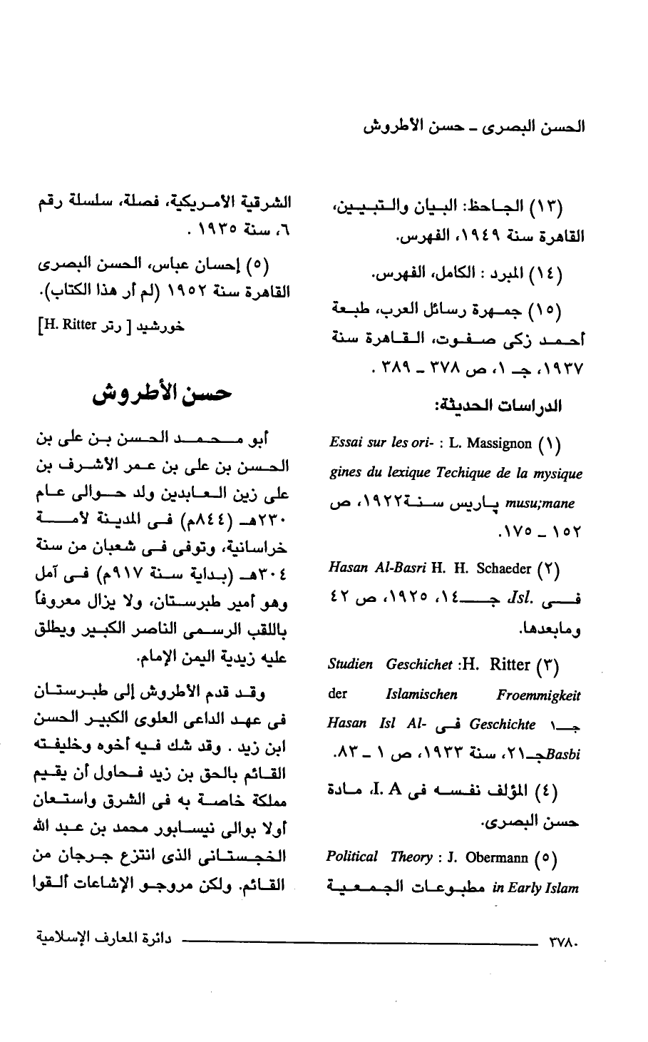 (2) Hasan Al-Basri H. H. Schaeder فى. Isl , جـ 14، 1925، ص 42 وما بعدها.
