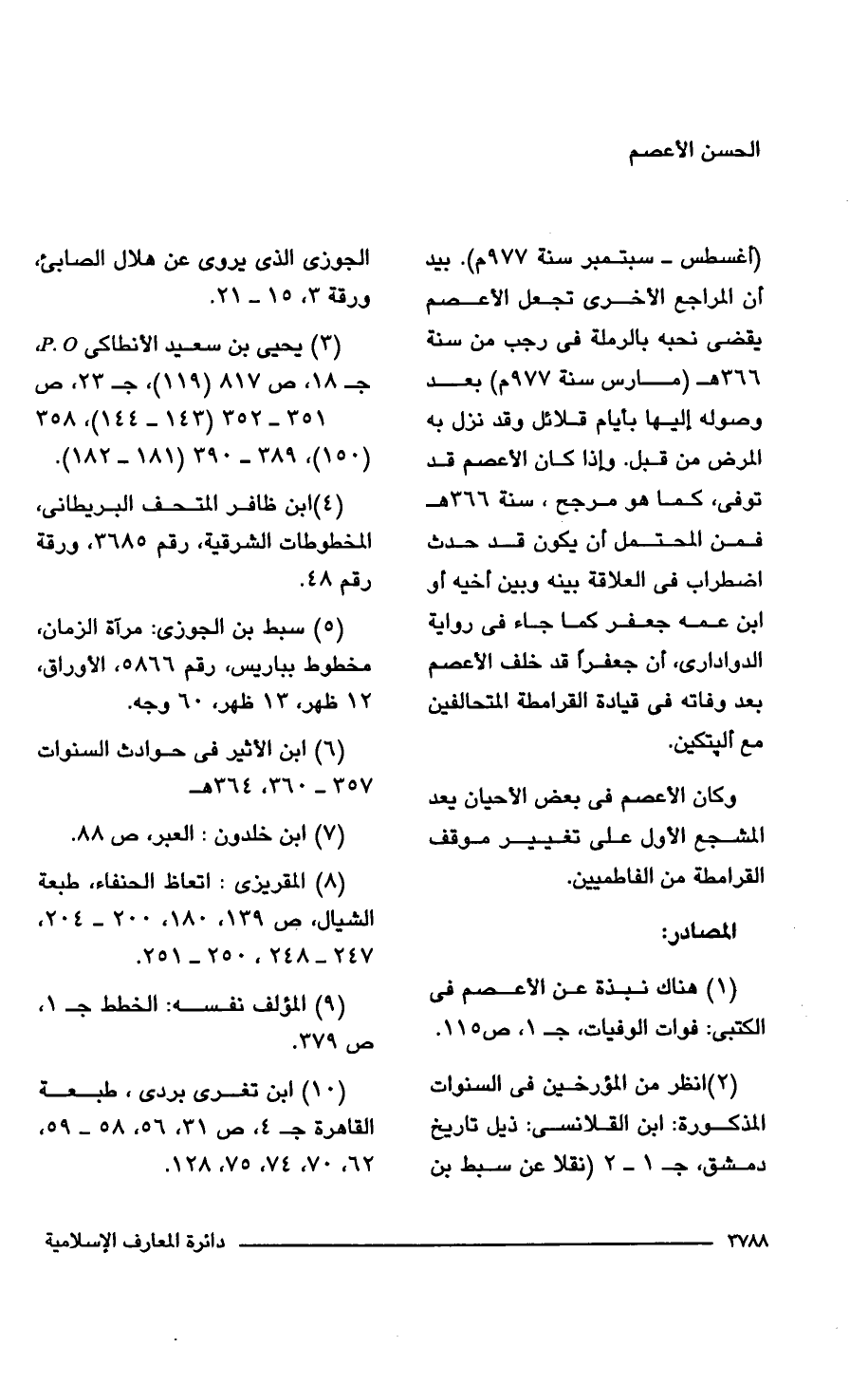 (3) يحيى بن سعيد الأنطاكى P.O، جـ 18، ص 817 (119) جـ 23، ص 351 - 352 (143 - 144)، 358 (150)، 389 - 390 (181 - 182).