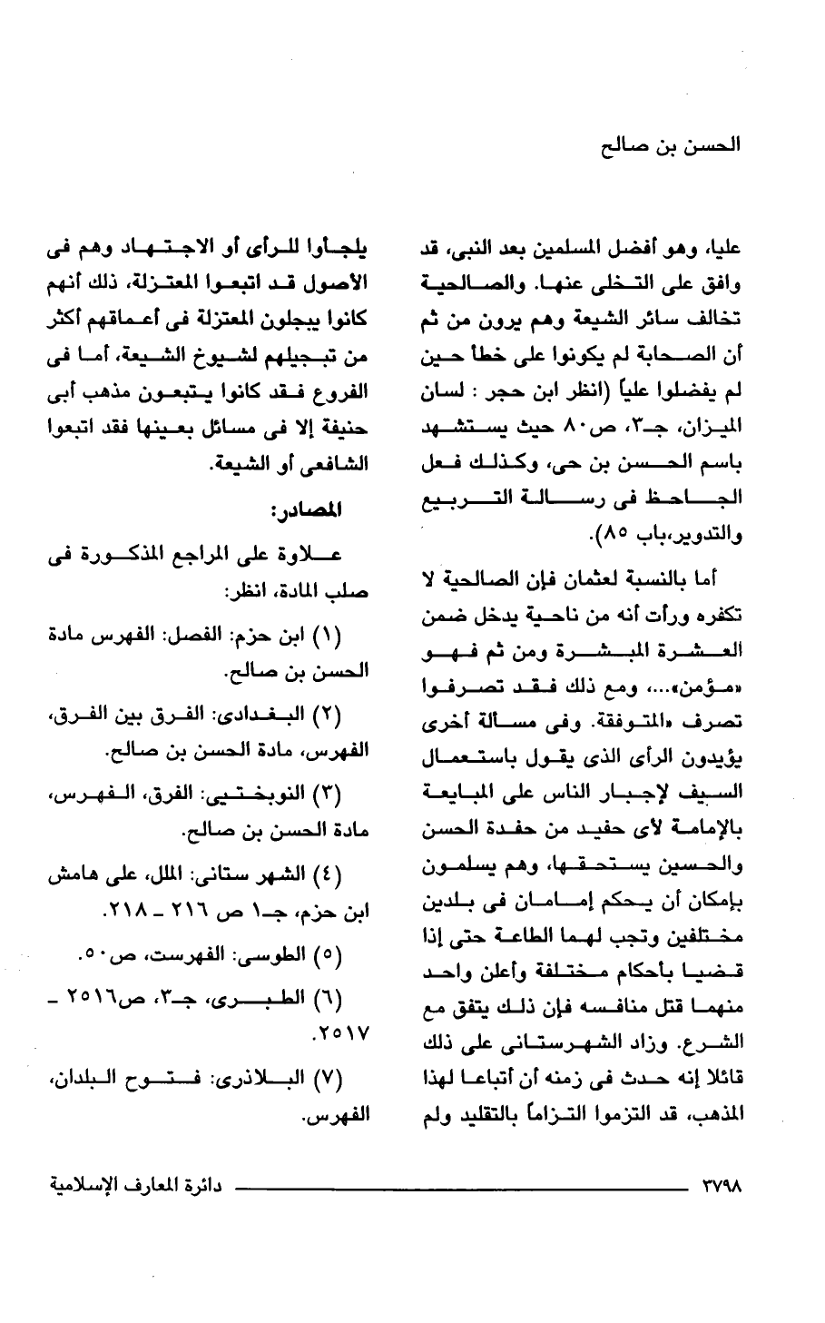 (2) البغدادى: الفرق بين الفرق، الفهرس، مادة الحسن بن صالح.