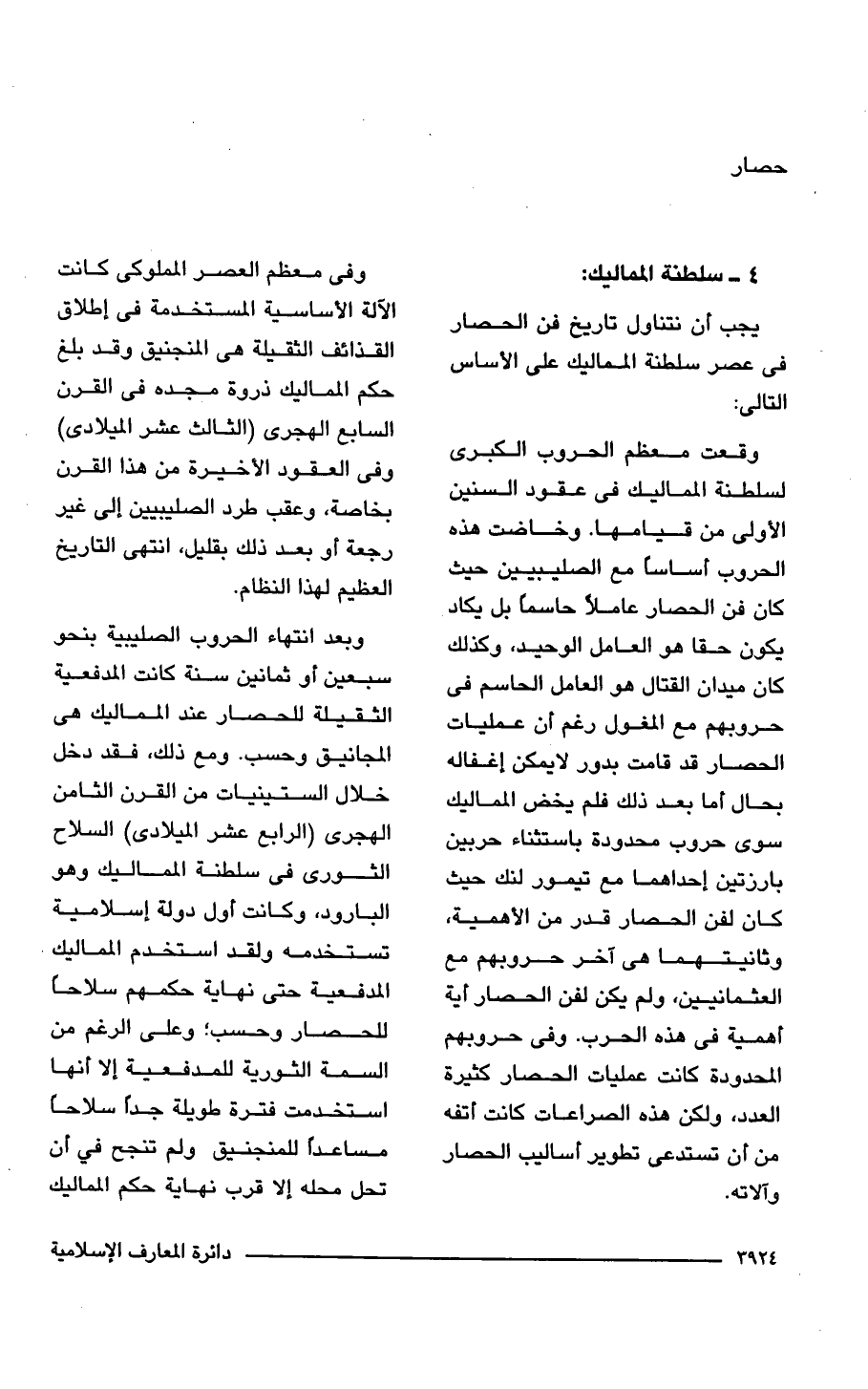 يجب أن نتناول تاريخ فن الحصار في عصر سلطنة المماليك على الأساس التالى: