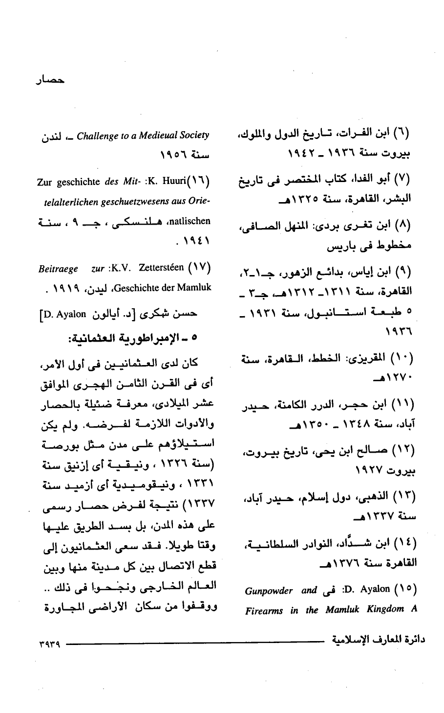 (15): D . Ayalon في Gunpowder and Firems in the Mamluk Kingdom A Challenge to a Medieual Society -، لندن سنة 1956