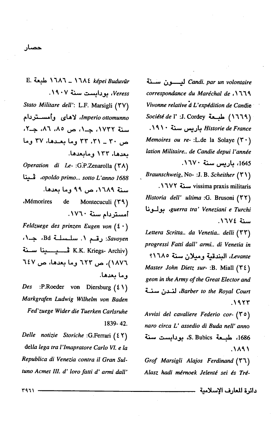 (37) Stato Militare dell': L.F. Marsigli Imperio ottomunno, لاهاى وأمستردام سنة 1732, جـ 1، ص 85، 86. جـ 2، ص 30 - 31، 33 وما بعدها، 37 وما بعدها، 133 وما بعدها.