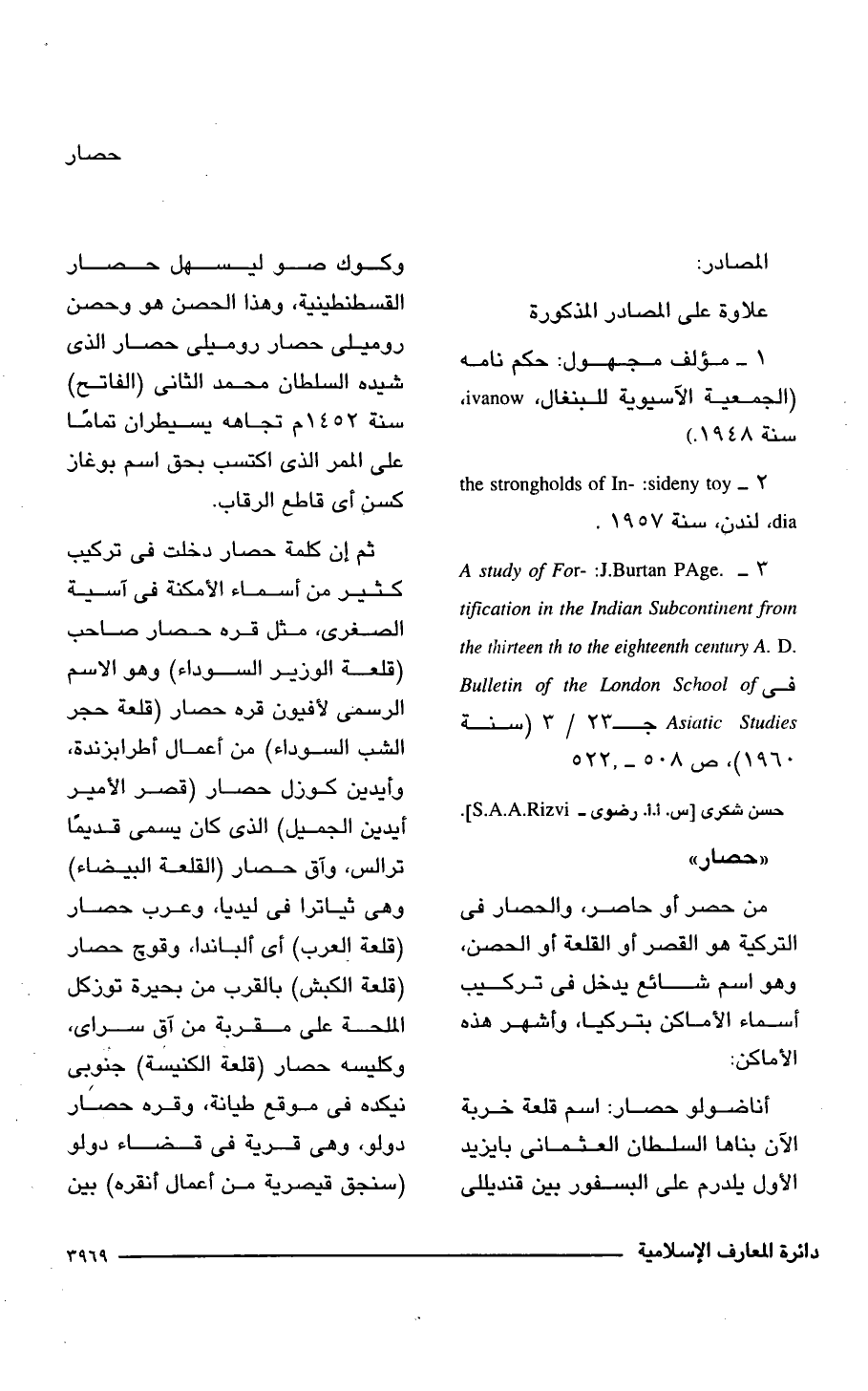 3 - A study of For-: J.Burtan PAge. tification in the Indian Subcontinent from the thirteen th to the eighteenth century A. D في Bulletin of the London School of Asiatic Studies جـ 23/ 3 (سنة 1960)، ص 508 - 522.
