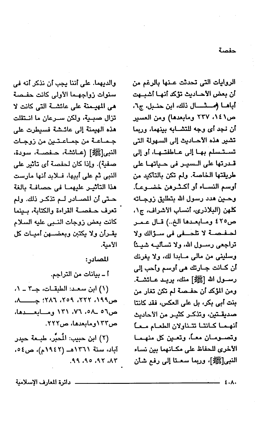 (1) ابن سعد: الطبقات، جـ 3 - 1، ص 199، 222، 259، 286؛ جـ 8، ص 56، 58، 76، 131 وما بعدها، ص 133 وما بعدها، ص 222.
