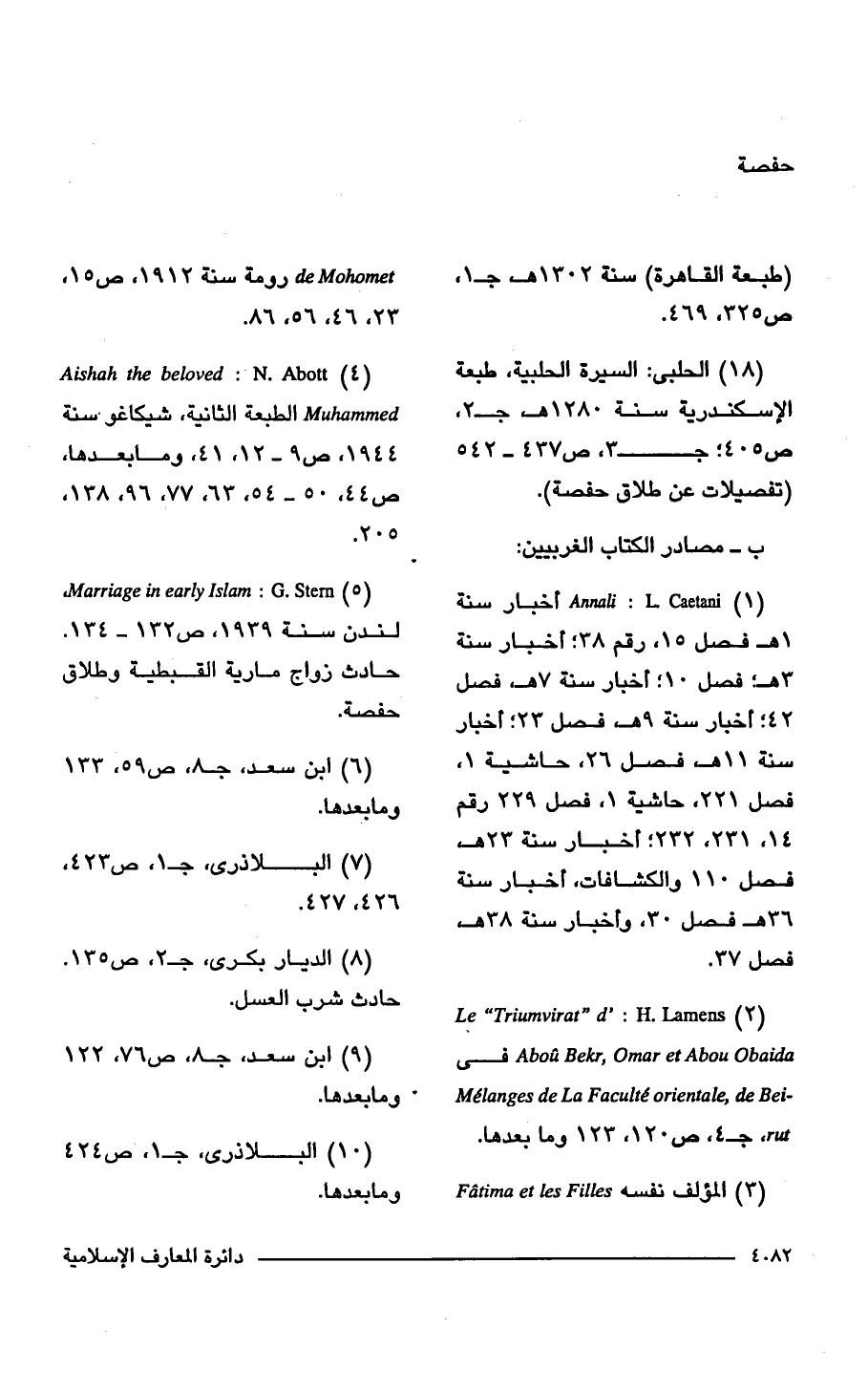(5) Marriage in early Islam: G. Stem, لندن سنة 1939، ص 132 - 134. حادث زواج مارية القبطية وطلاق حفصة.