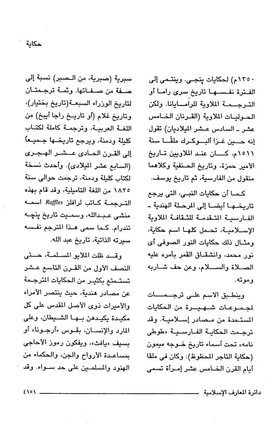 1350 م) لحكايات بنجى. وينتمى إلى الفترة نفسها تاريخ سرى راما أو الترجمة الملاوية للرَامايانا. ولكن الحوليات الملاوية (القرنان الخامس عشر - السادس عشر الميلاديان) تقول إنه حين غزا ألبوكرك ملقّا سنة 1511 م، كان عند الملاويين تاريخ الأمير حمزة، وتاريخ الحنفية وكلاهما منقول من الفارسية، ثم تاريخ يوسف.