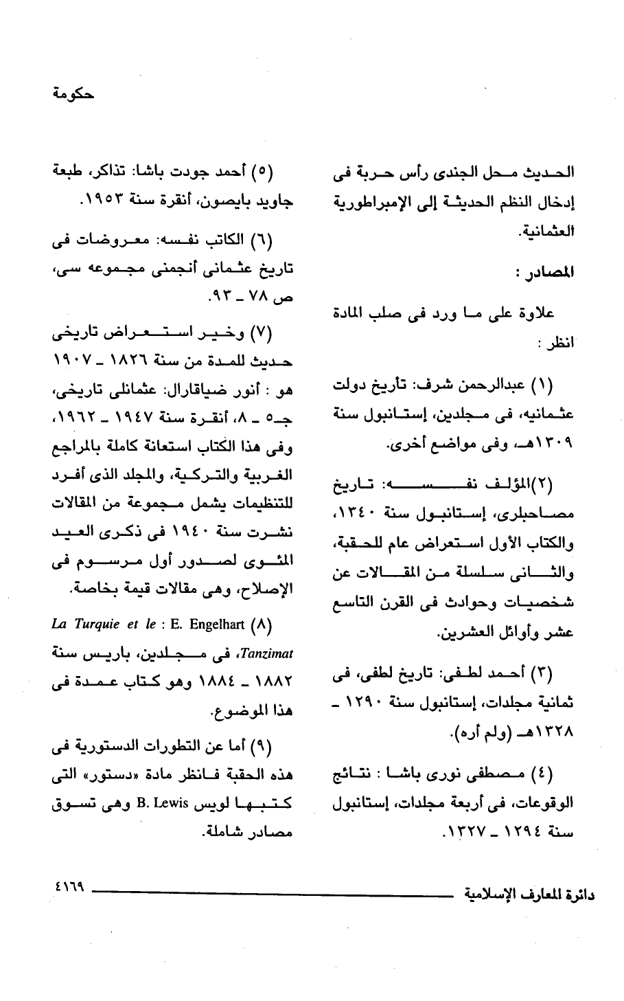 (9) أما عن التطورات الدستورية فى هذه الحقبة فانظر مادة "دستور" التى كتبها لويس B. Lewis وهى تسوق مصادر شاملة.