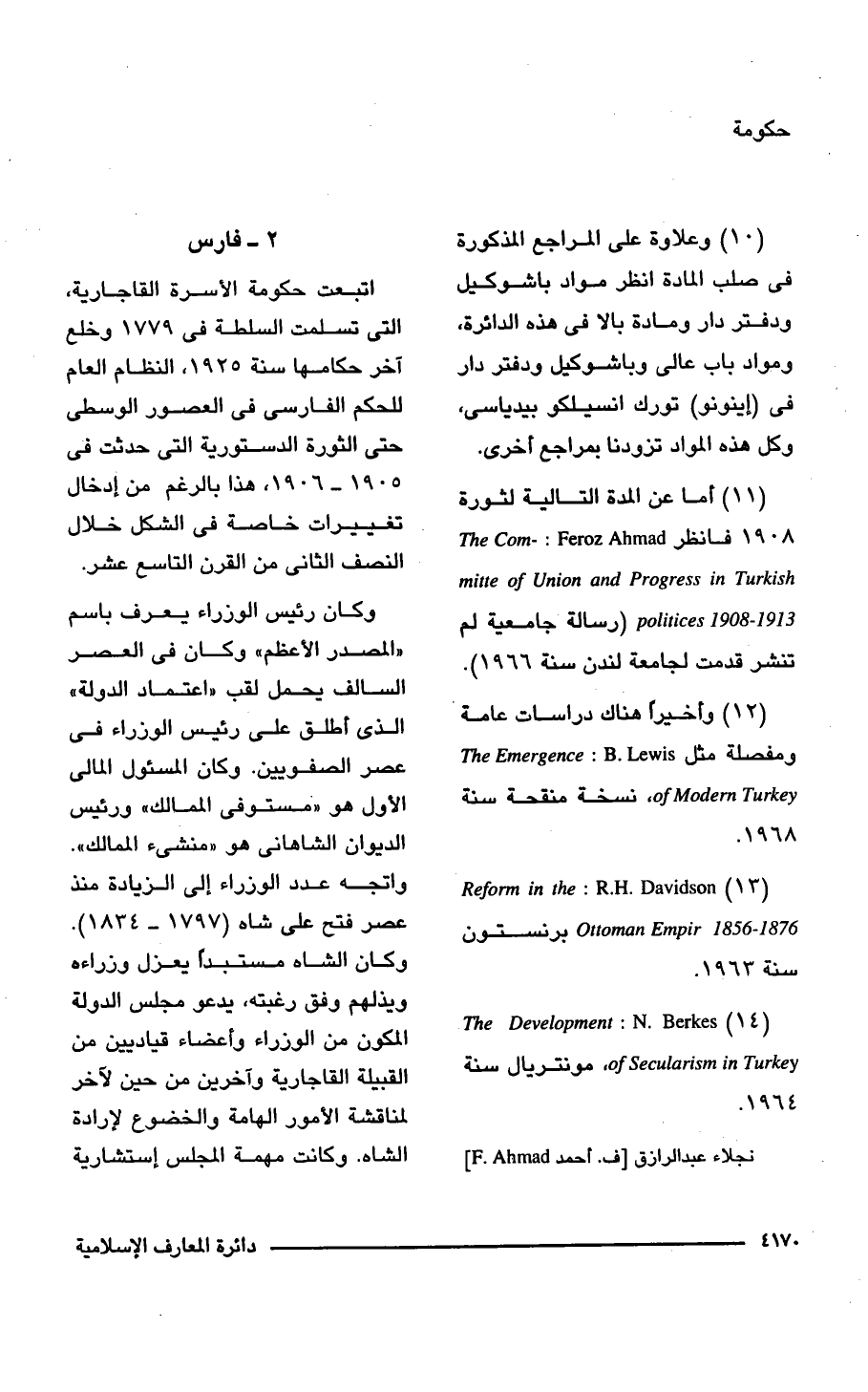 (14) The Development: N. Berkes of Secularism in Turkey، مونتريال سنة 1964.
