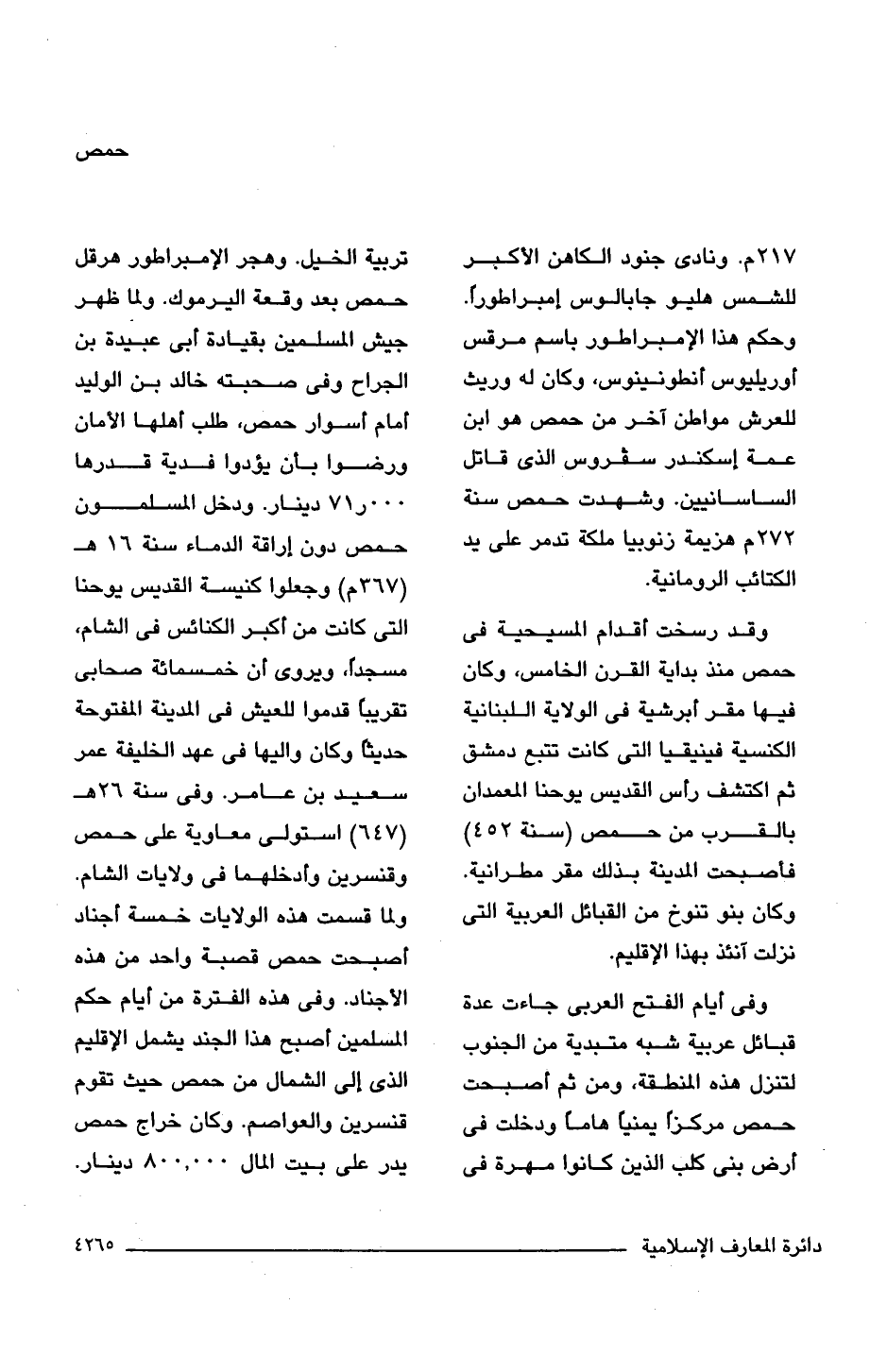 217 م. ونادى جنود الكاهن الأكبر للشمس هليو جابالوس إمبراطورًا. وحكم هذا الإمبراطور باسم مرقس أوريليوس أنطونينوس، وكان له وريث للعرش مواطن آخر من حمص هو ابن عمة إسكندر سفروس الذى قاتل الساسانيين. وشهدت حمص سنة 272 م هزيمة زنوبيا ملكة تدمر على يد الكتائب الرومانية.