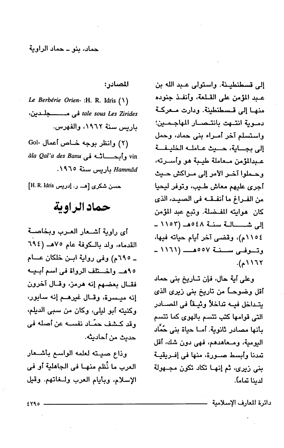 (1) Le Berberie Orien-: H. R. Idris tale sous Les Zirides فى مجلدين، باريس سنة 1962, والفهرس.