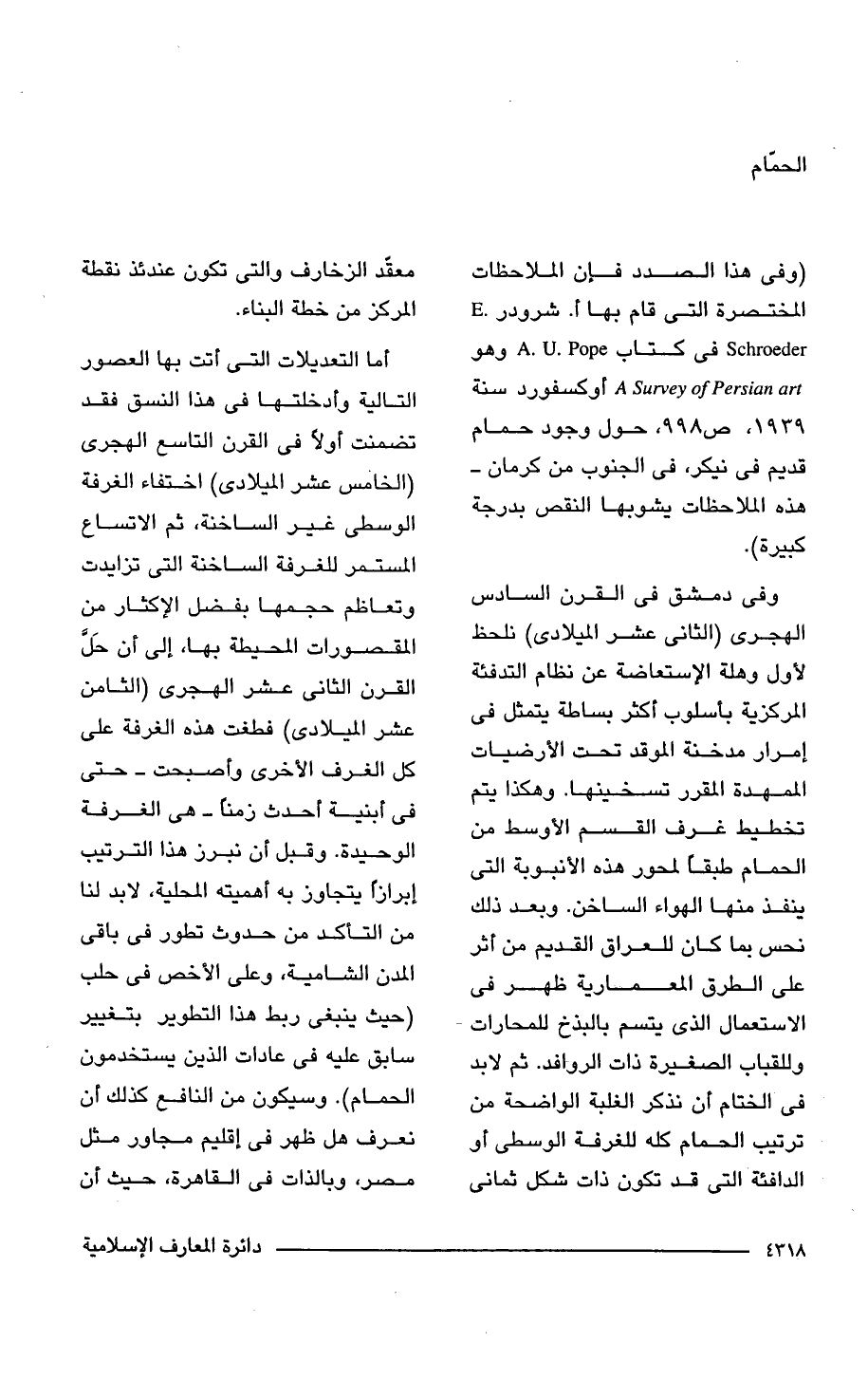(وفى هذا الصدد فإن الملاحظات المختصرة التى قام بها أ. شرودر. E Schroeder فى كتاب A. U. Pope وهو A Survey of Persian art أوكسفورد سنة 1939, ص 998, حول وجود حمام قديم فى نيكر، فى الجنوب من كرمان - هذه الملاحظات يشوبها النقص بدرجة كبيرة).