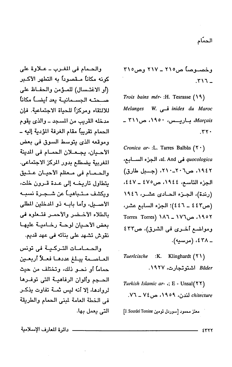 (19) Trois bains mer-: H. Tesrasse inides du Maroc فى Melanges W. Marcais، باريس, 1950، ص 311 - 320.