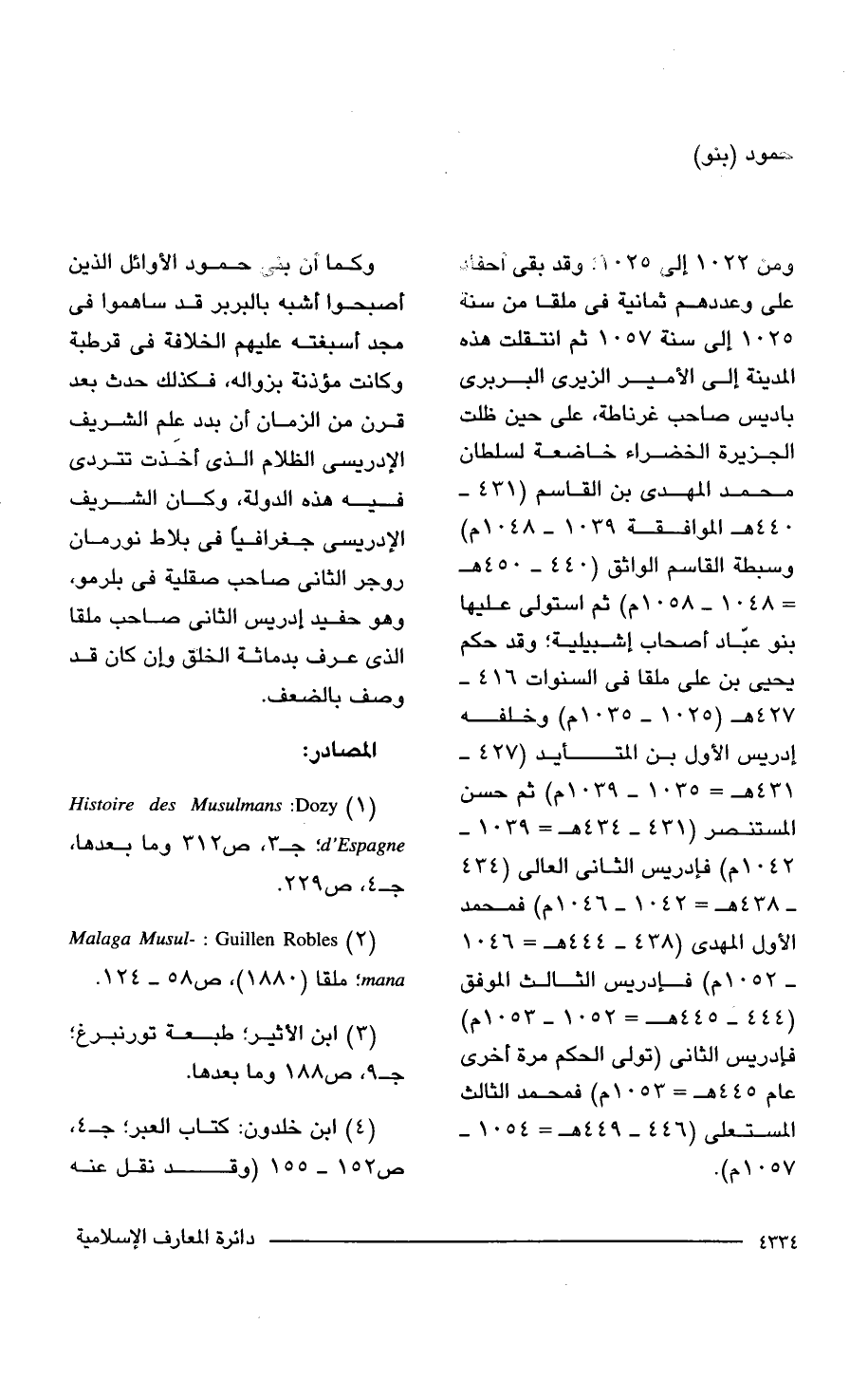 (1) Dozy: Histoire des Muslmans d'Espagne؛ جـ 3، ص 312 وما بعدها، جـ 4، ص 229.