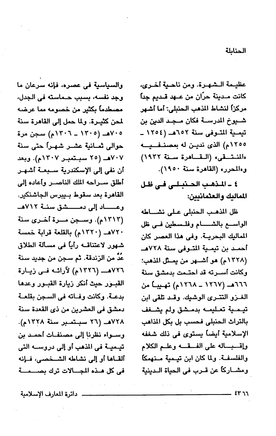 4 - المذهب الحنبلى فى ظل المماليك والعثمانيين: