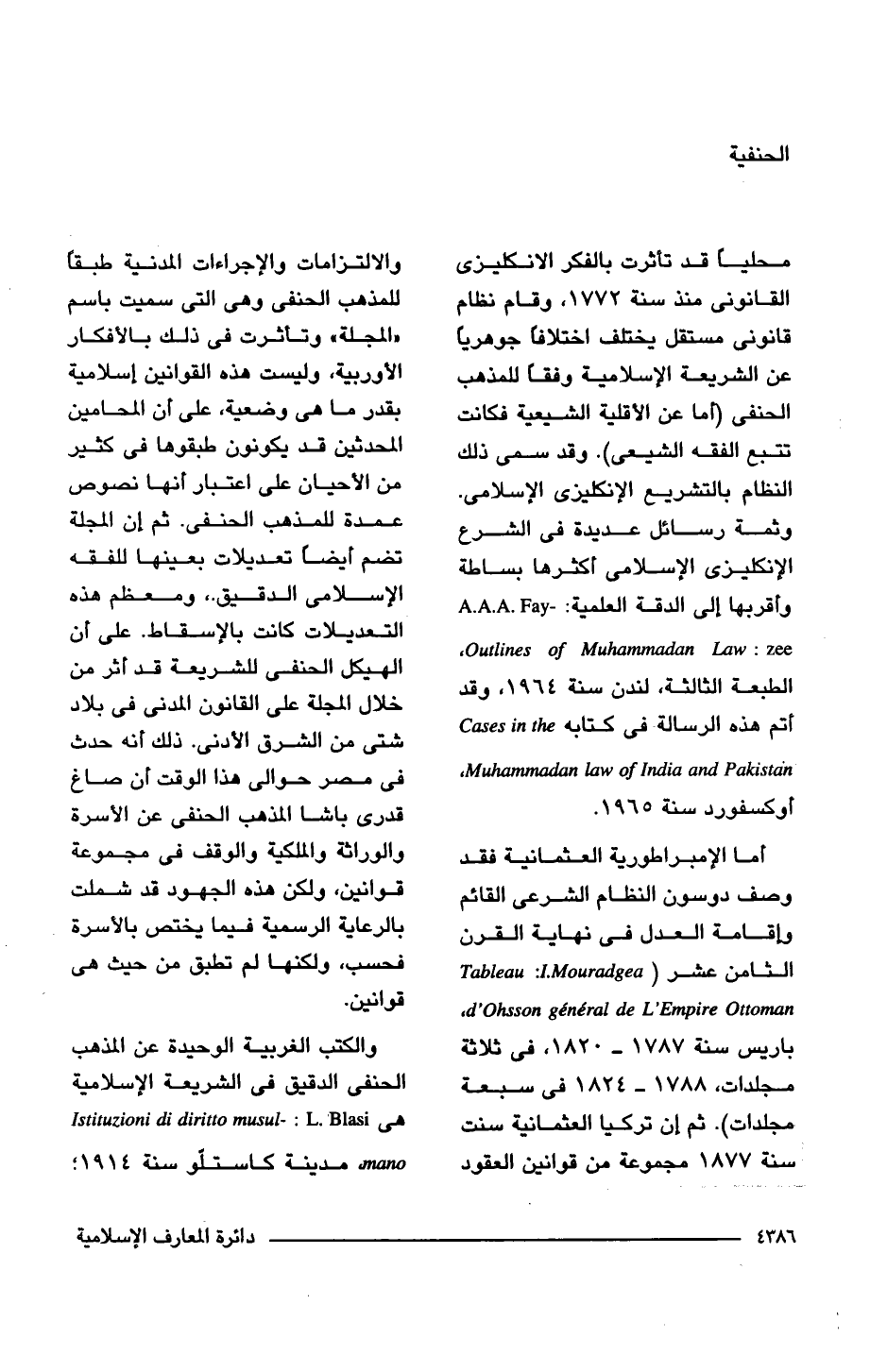 والكتب الغربية الوحيدة عن المذهب الحنفى الدقيق فى الشريعة الإِسلامية هى Istituzioni di diritto musul-: L.Blasi mano, مدينة كاستلّو سنة 1914؛