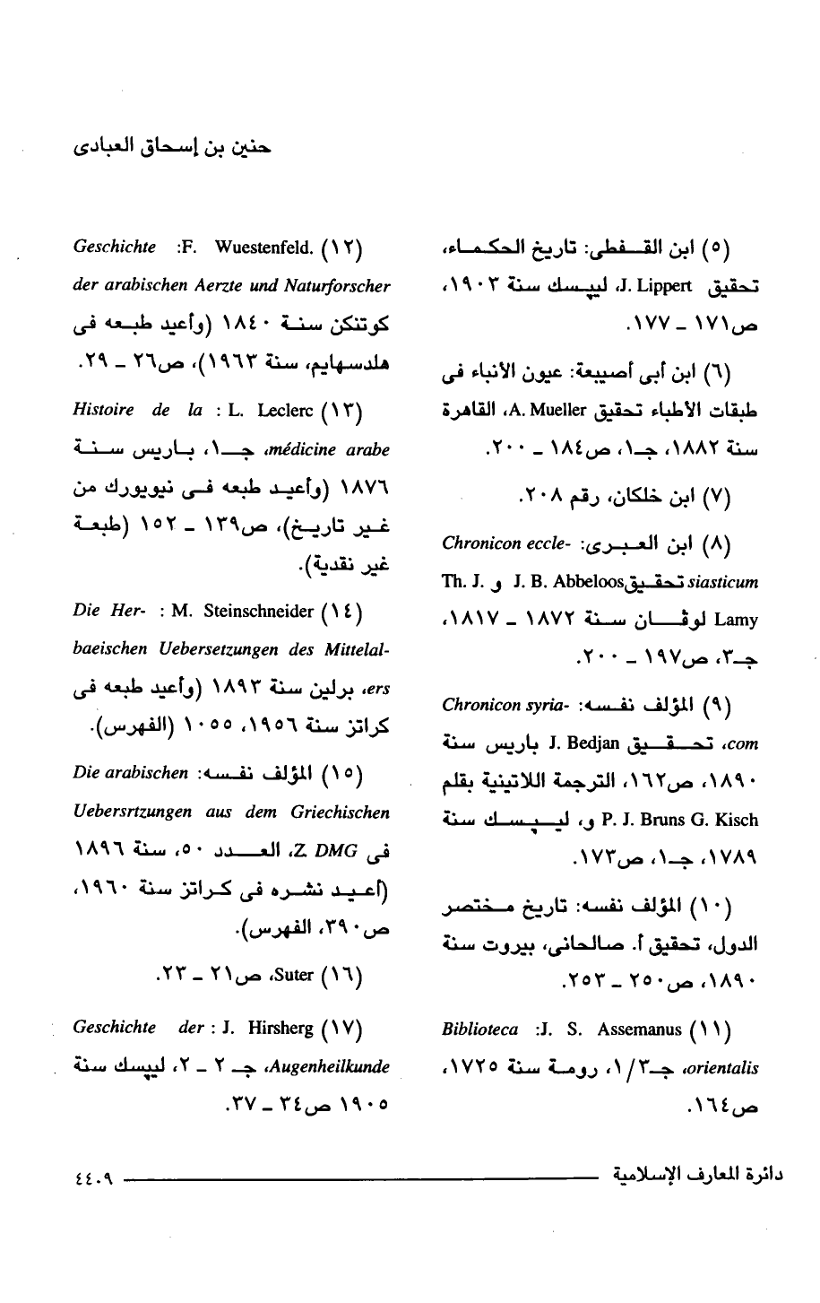(13) Histoire de la: L. Leclerc medicine arabe جـ 1، باريس سنة 1876 (وأعيد طبعه في نيويورك من غير تاريخ)، ص 139 - 152) طبعة غير نقدية).