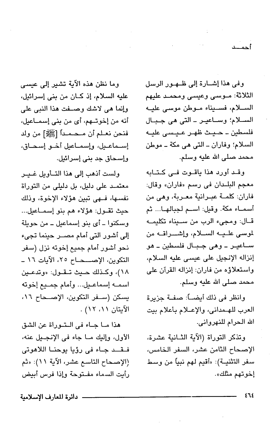 وقد أورد هذا ياقوت فى كتابه معجم البلدان فى رسم "فاران" وقال: فاران: كلمة عبرانية معربة، وهي من أسماء مكة. وقيل: اسم لجبالها ... ثم قال: ومجئ الرب من سيناء تكليمه لموسى عليه السلام، وإشراقه من ساعير -وهي جبال فلسطين- هو إنزاله الإنجيل على عيسى عليه السلام، واستعلاؤه من فاران: إنزاله القرآن على محمد صلى الله عليه وسلم.