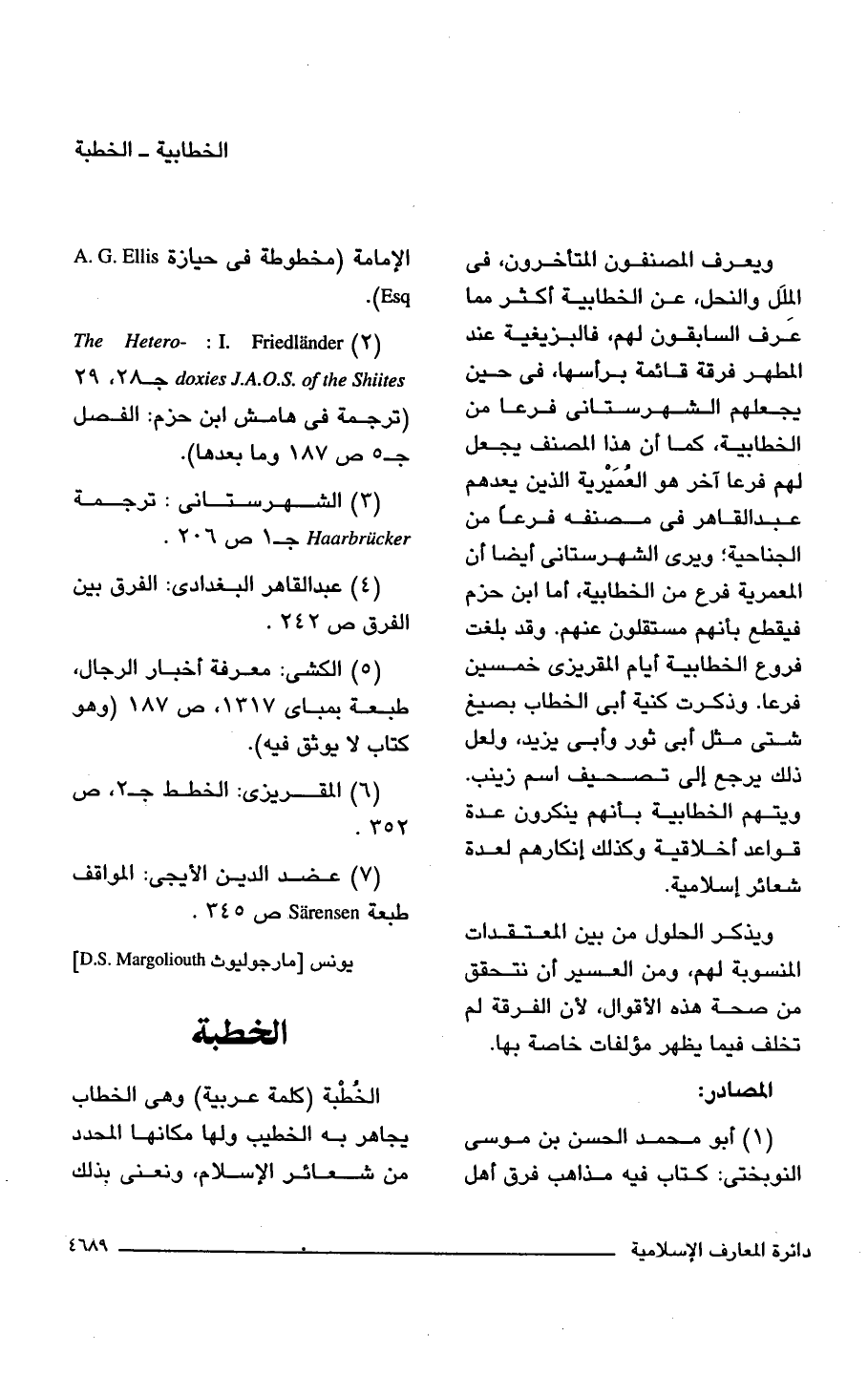 (2) The Hetero-: I. Friedlander doxies J.A.O.S. of the Shiites جـ 28 , 29 (ترجمة في هامش ابن حزم: الفصل جـ 5 ص 187 وما بعدها).