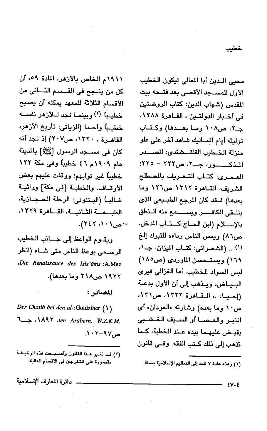 (1) Der Chatib bei den al-: Goldziher ten Arabern. W.Z.K.M .. ، 1892, جـ 6 ص 97 - 102.