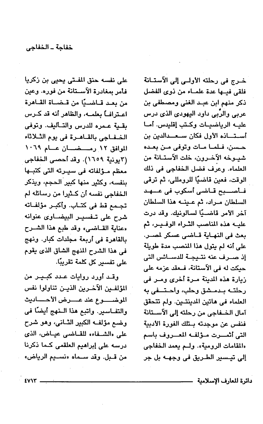 خرج في رحلته الأولى إلى الآستانة فلقى فيها عدة علماء من ذوى الفضل ذكر منهم ابن عبد الغنى ومصطفى بن عربي والرِّبى داود اليهودي الذي درس عليه الرياضيات وكتب إقليدس. أما أستاذه الأول فكان سعد الدين بن حسن، فلما مات وتوفي من بعده شيوخه الآخرون، خلت الآستانة من العلماء. وعرف فضل الخفاجى في ذلك الوقت، فعين قاضيًا للرومللى، ثم ترقى فأصبح قاضى أسكوب في عهد السلطان مراد، ثم عينه هذا السلطان آخر الأمر قاضيًا لسالونيك. وقد درت عليه هذه المناصب الثراء الوفير، ثم بعث في النهاية قاضى عسكر لمصر. على أنه لم يتول هذا المنصب مدة طويلة إذ صرف عنه نتيجة للدسائس التي حيكت له في الآستانة، فعقد عزمه على زيارة هذه المدينة مرة أخرى ومر في رحلته بدمشق وحلب، واحتفى به العلماء في هاتين المدينتين. ولم تتحقق آمال الخفاجى من رحلته إلى الآستانة فنفس عن موجدته بتلك الفورة الأدبية التي أثمرت مؤلفه المعروف باسم "المقامات الرومية". ولم يعمد الخفاجى إلى تيسير الطريق في وجهه بل جر على نفسه حنق المفتى يحيى بن زكريا فأمر بمغادرة الآستانة من فوره. وعين من بعد قاضيًا من قضاة القاهرة اعترافا بعلمه، والظاهر أنه قد كرس بقية عمره للدرس والتأليف. وتوفي الخفاجى بالقاهرة في يوم الثلاثاء الموافق 12 رمضان عام 1069 (3 يونية 1659). وقد أحصى الخفاجى معظم مؤلفاته في سيرته التي كتبها بنفسه، وكثير منها كبير الحجم، ويذكر الخفاجى نفسه أن كثيرا من رسائله لم تجمع قط في كتاب. وأكبر مؤلفاته شرح على تفسير البيضاوى عنوانه "عناية القاضى" وقد طبع هذا الشرح بالقاهرة في أربعة مجلدات كبار. ونهج في هذا الشرح المنهج الشاق الذي يقوم على تفسير كل كلمة تقريبًا.