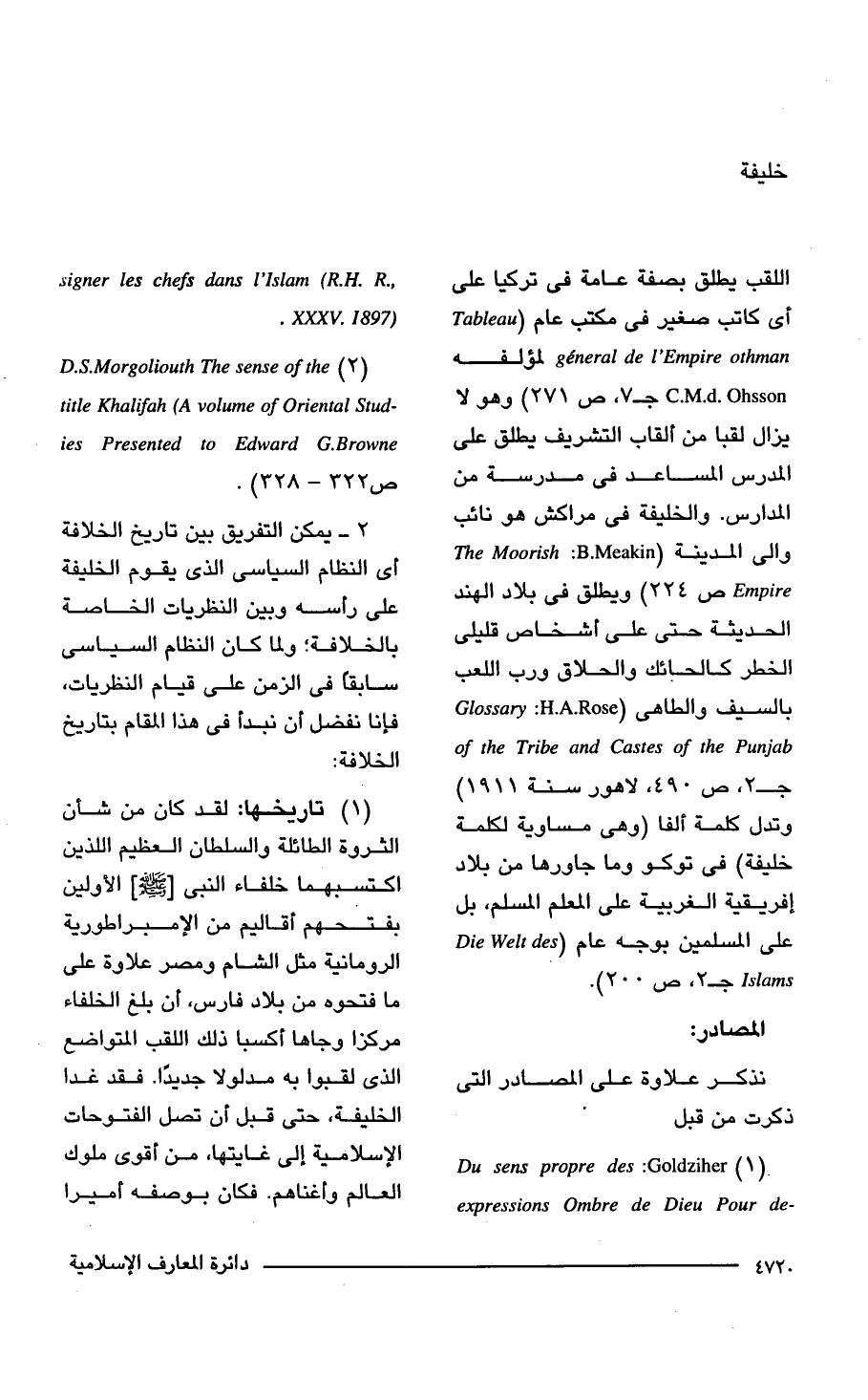 (2) D.S.Morgoliouth The sense of the -title Khalifah (A volume of Oriental Studies Presented to Edward G. Rrnwne ص 322 - 328).
