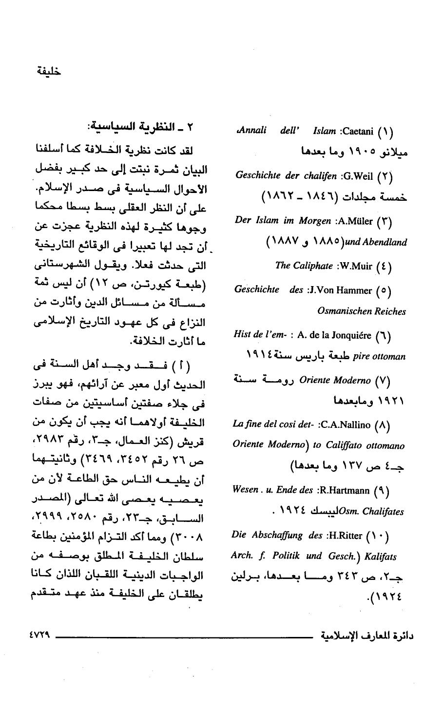 (10) Die Abschaffung des: H.Ritter Arch. f. Politik und Gesch.) Kalifats جـ 2، ص 343 وما بعدها، برلين 1924).