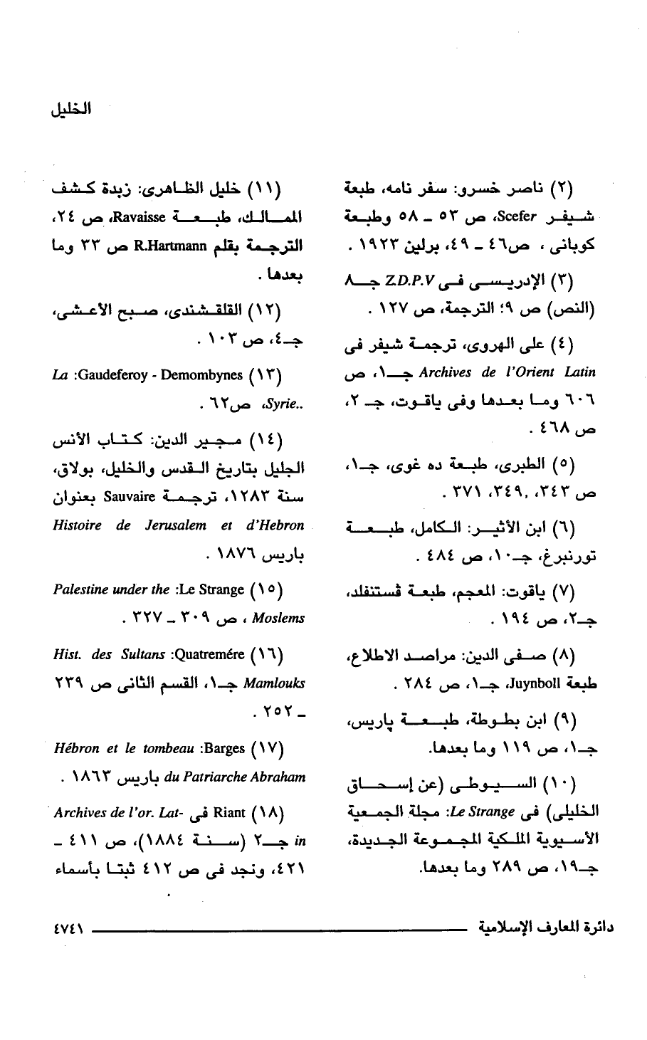 (14) مجير الدين: كتاب الأنس الجليل بتاريخ القدس والخليل, بولاق، سنة 1283 , ترجمة sauvaire بعنوان Histoire de Jerusalem et d'Hebron باريس 1876.