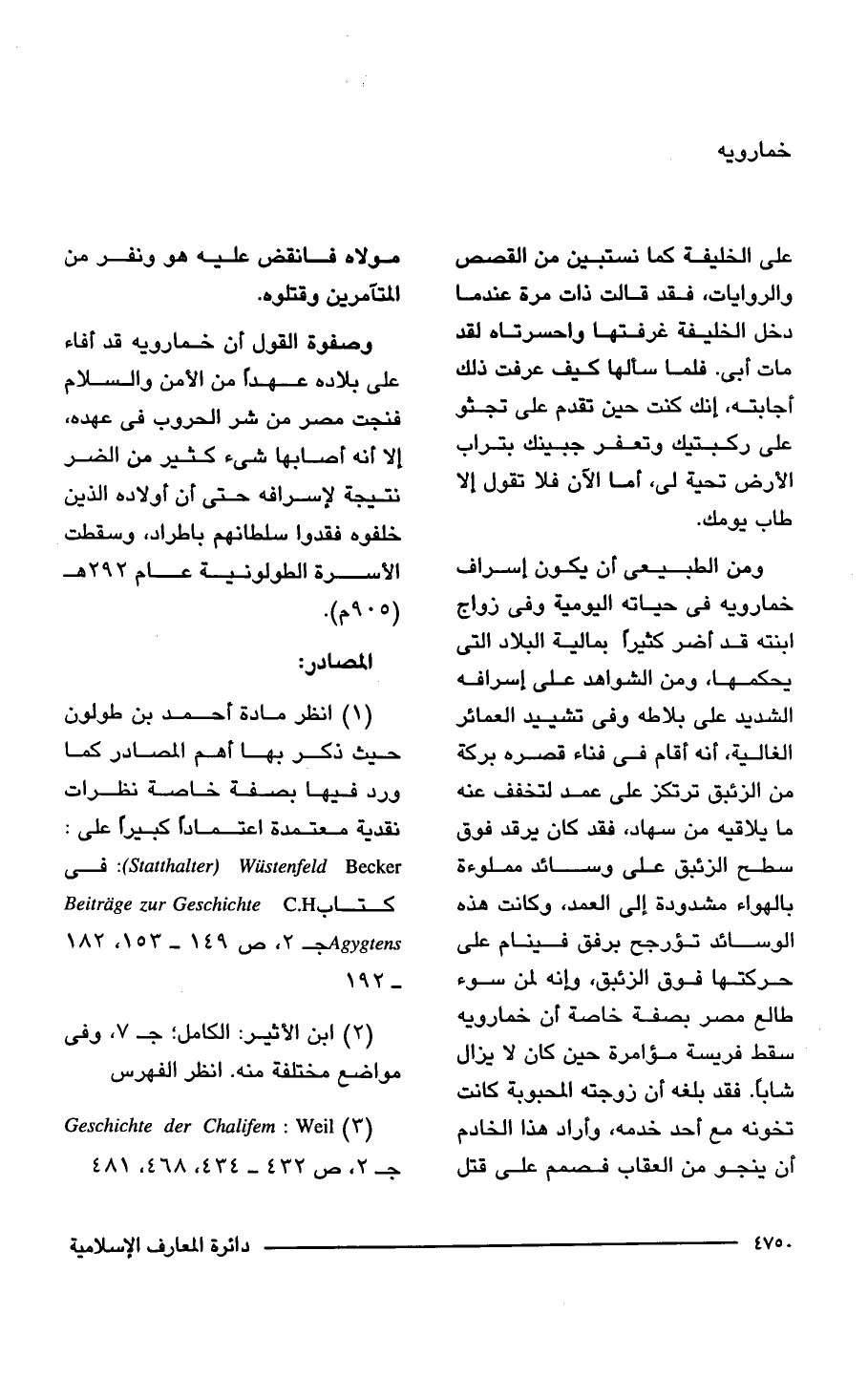 (1) انظر مادة أحمد بن طولون حيث ذكر بها أهم المصادر كما ورد فيها بصفة خاصة نظرات نقدية معتمدة اعتمادا كبيرا على: WUstenfeld Becker (Statthalter): في كتاب Beitrage zur Geschichte C.H Agygtens جـ 2، ص 149 - 153, 182 - 192.