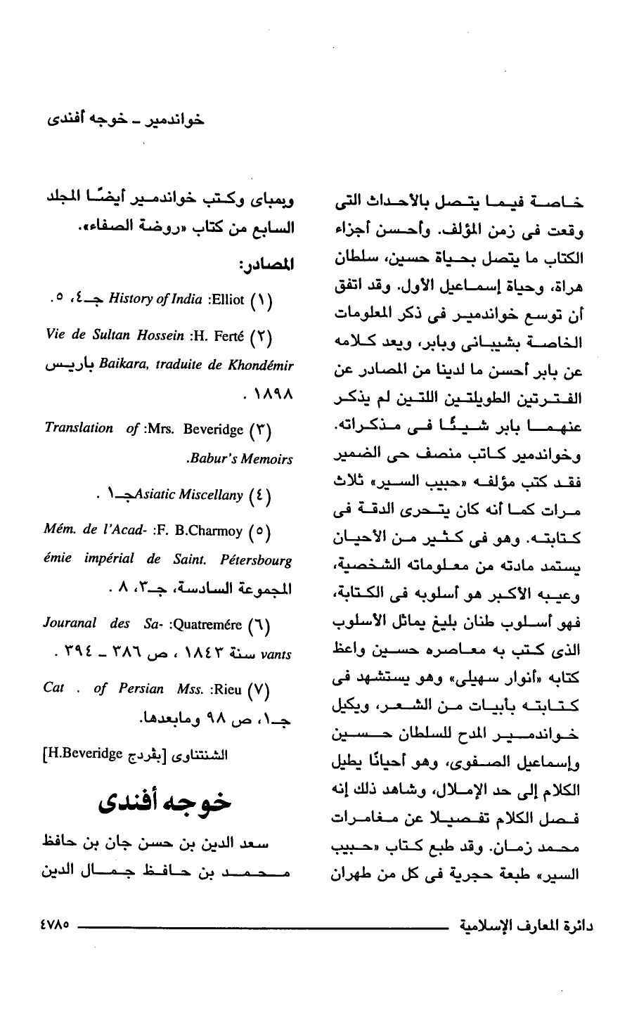 (2) Vie de Sultan Hossein: H. Ferte Baikara, traduite de Khondemir باريس 1898.