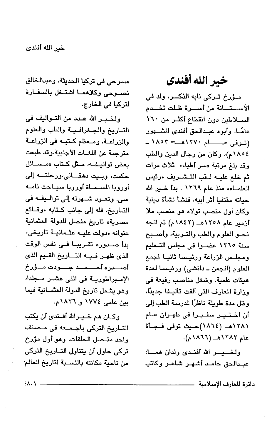 مؤرخ تركي نابه الذكر، ولد في الآستانة من أسرة ظلت تخدم السلاطين دون انقطاع أكثر من 160 عامًا. وأبوه عبد الحق أفندي المشهور (توفي عام 1270 هـ = 1853 - 1854 م)، وكان من رجال الدين والطب وقد بلغ مرتبة "سر أطباء" ثلاث مرات ثم خلع عليه لقب التشريف "رئيس العلماء" منذ عام 1269. بدأ خير الله حياته مقتفيا أثر أبيه، فنشأ نشأة دينية وكان أول منصب تولاه هو منصب ملا أزمير عام 1258 هـ (1842 م) ثم اتجه نحو العلوم والطب والتربية، وأصبح سنة 1265 عضوا في مجلس التعليم ومجلس الزراعة ورئيسا ثانيا لمجمع العلوم (انجمن - دانشى) ورئيسا لعدة هيئات علمية. وشغل مناصب رفيعة في وزارة المعارف التي ألفت تأليفا جديدًا، وظل مدة طويلة ناظرًا لمدرسة الطب إلى أن اختير سفيرا في طهران عام 1281 هـ (1864) حيث توفي فجأة عام 1283 هـ (1866 م).