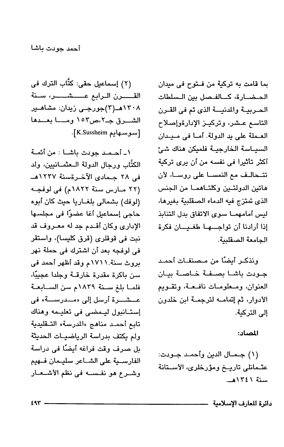(1) جمال الدين وأحمد جودت: عثمانلى تاريخ ومؤرخلرى، الأستانة سنة 1341 هـ.