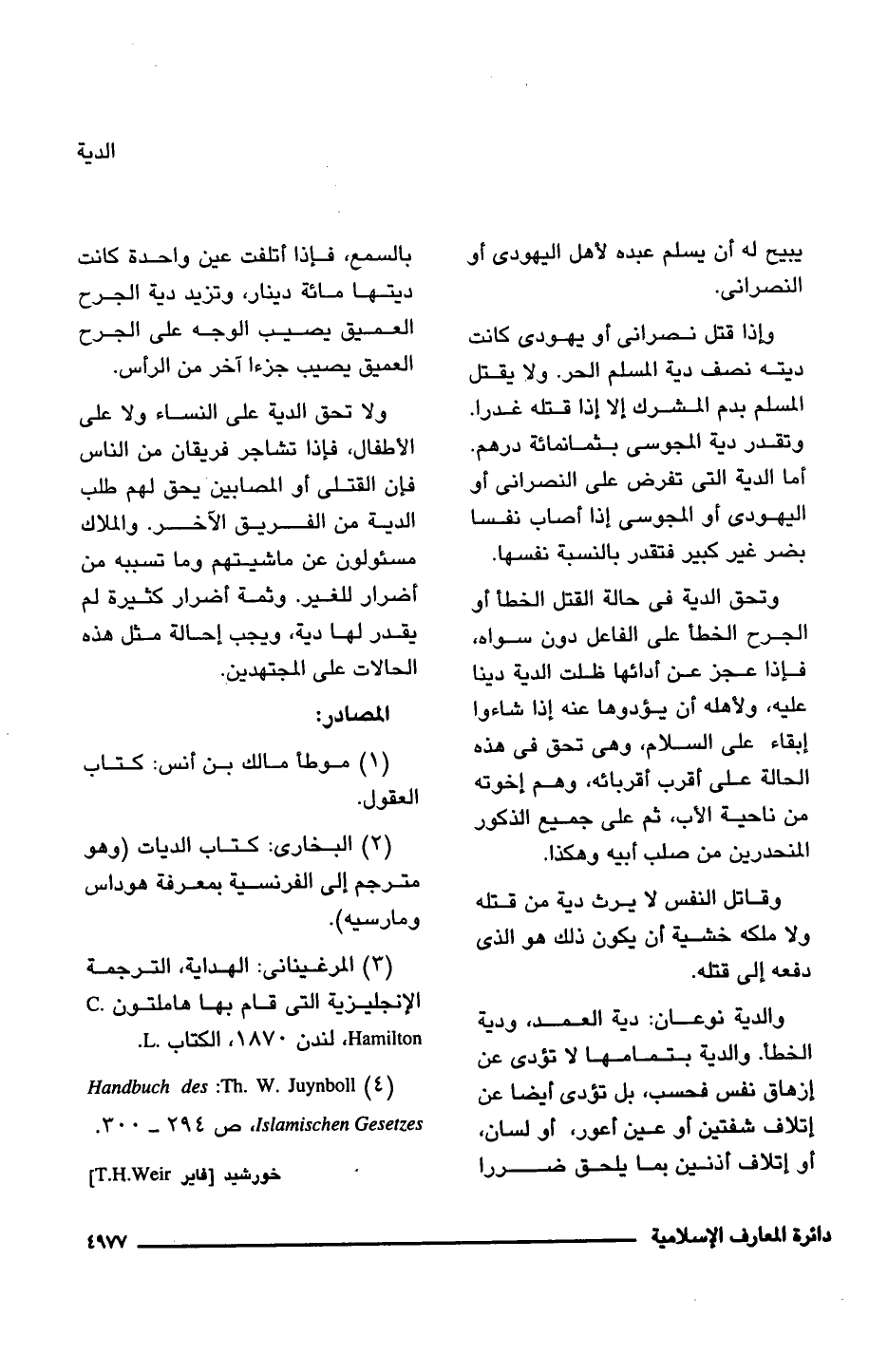 (2) البخارى: كتاب الديات (وهو مترجم إلى الفرنسية بمعرفة هوداس ومارسيه).