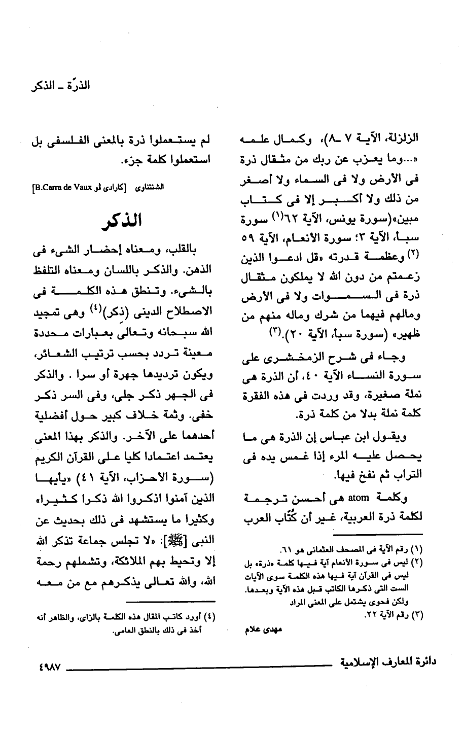 (¬2) ليس في سورة الأنعام آية فيها كلمة "ذرة" بل ليس في القرآن آية فيها هذه الكلمة سوى الآيات الست التي ذكرها الكاتب قبل هذه الآية وبعدها. ولكن فحوى يشتمل على المعنى المراد